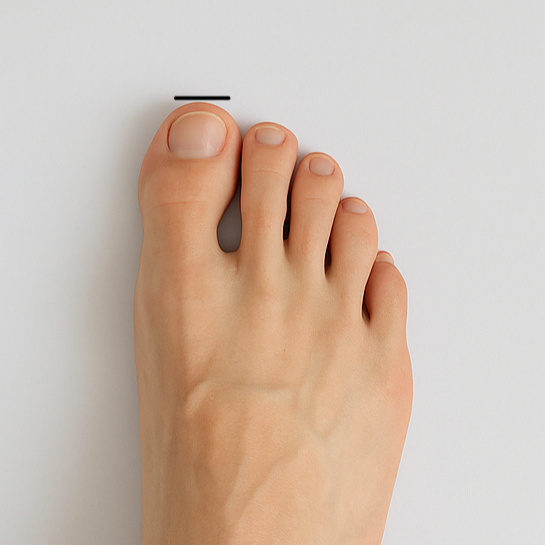 Make a mark at the tip of your longest toe (heel on the wall, full weight).