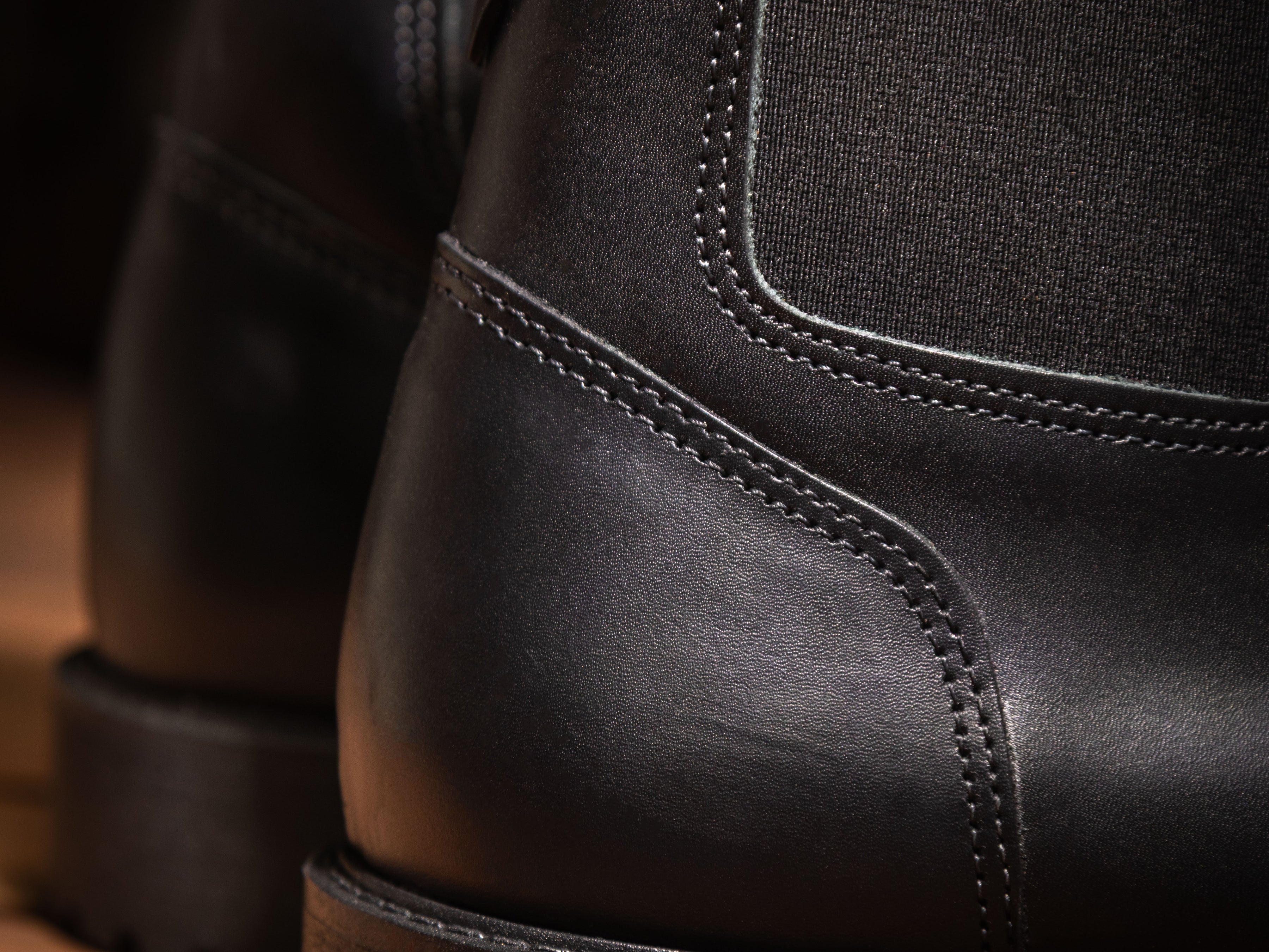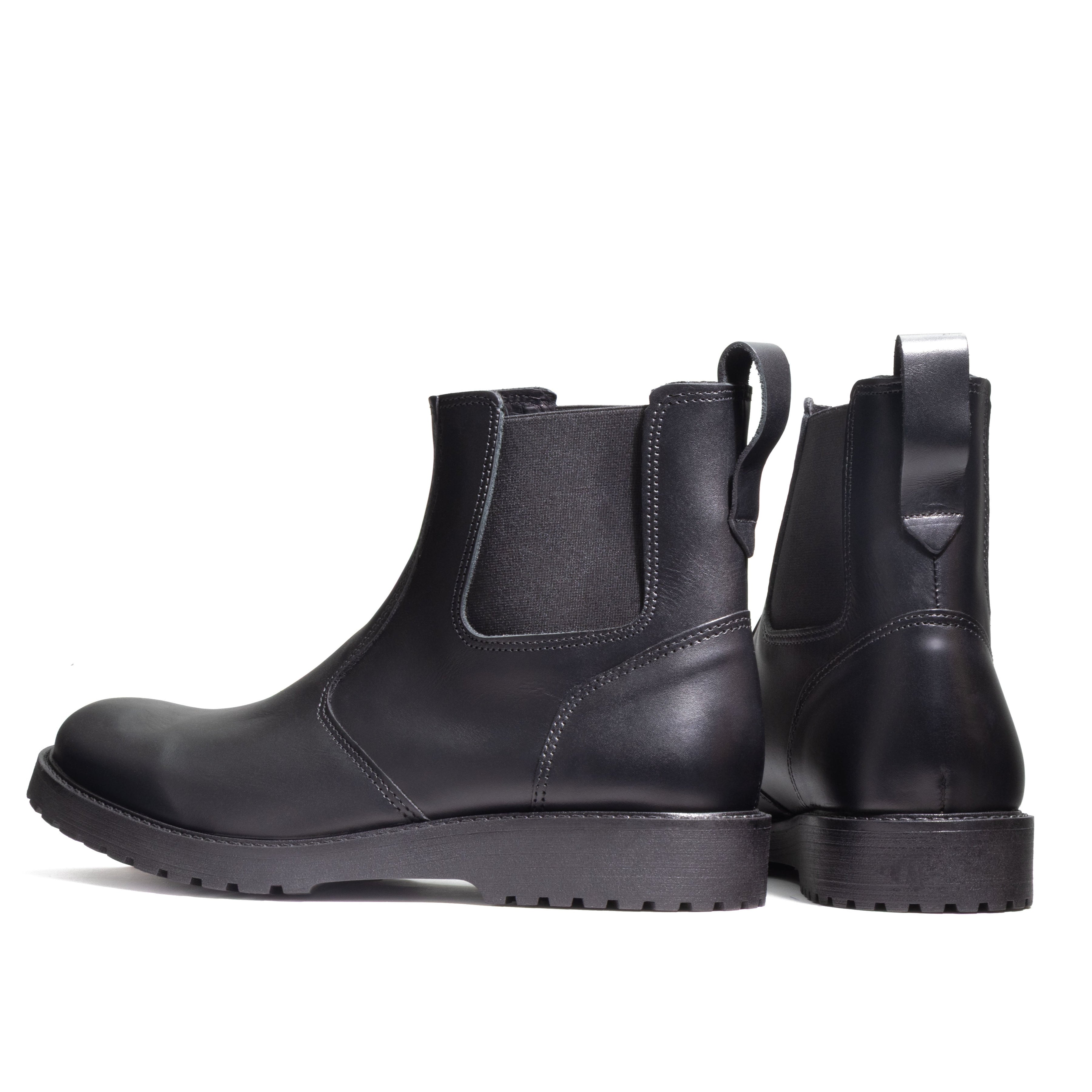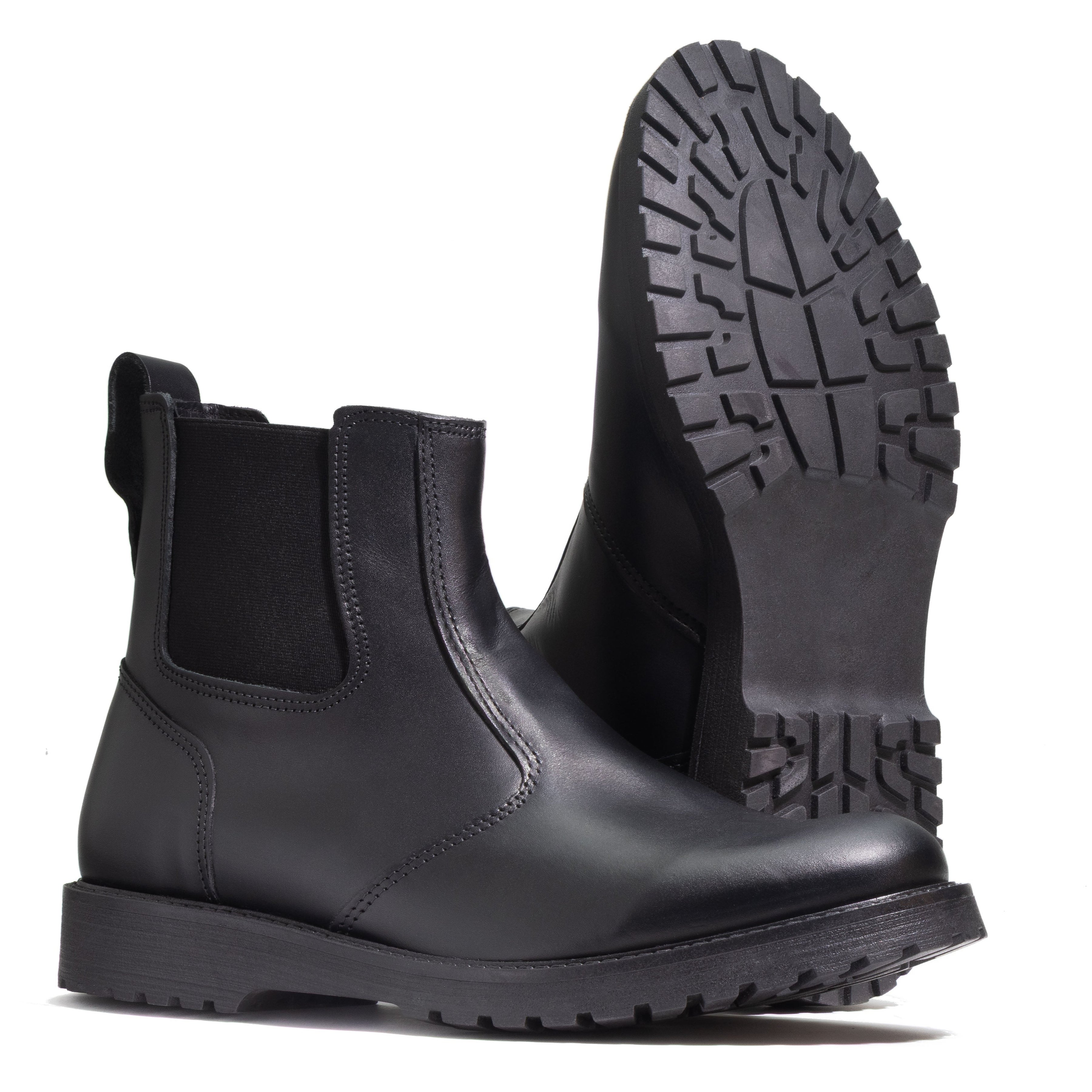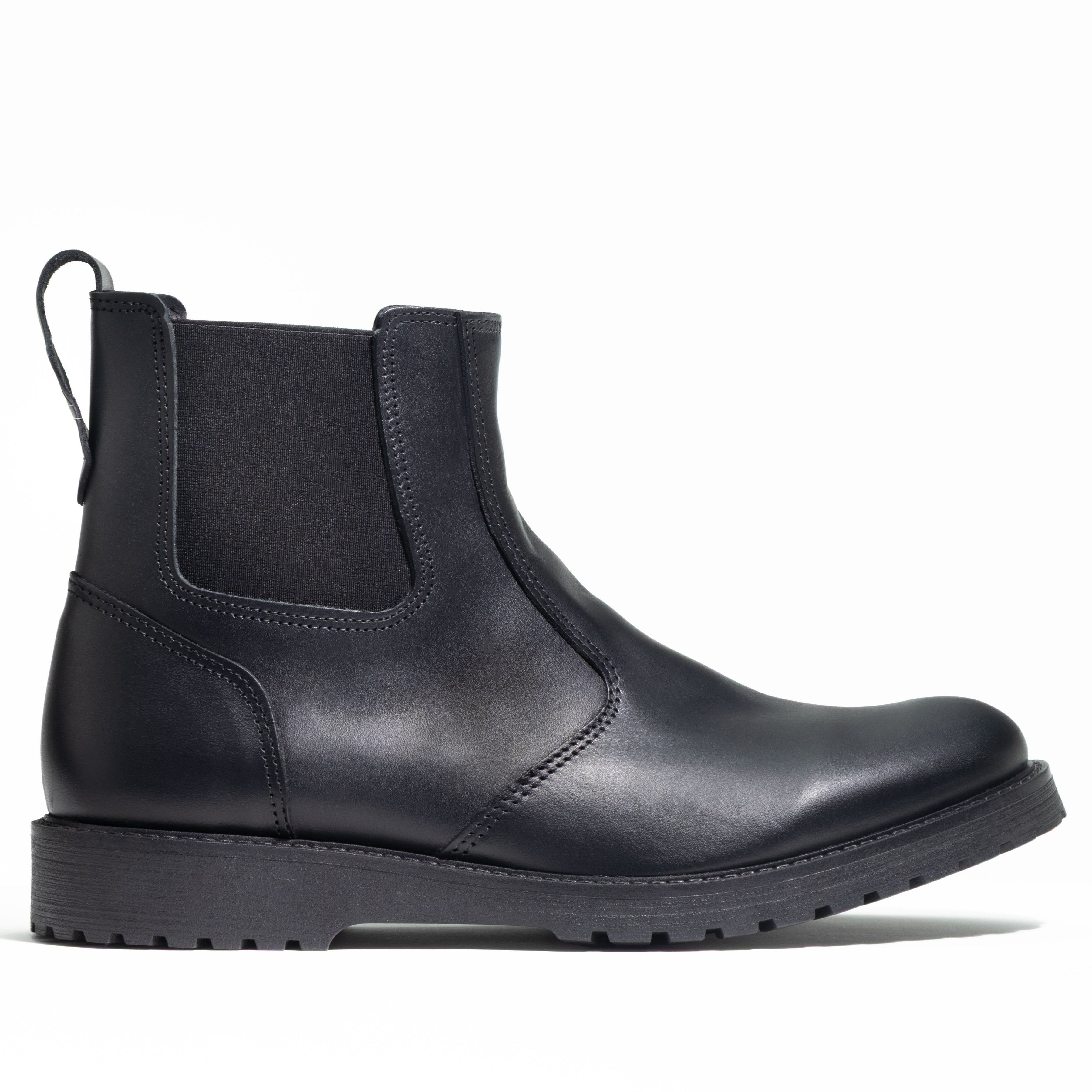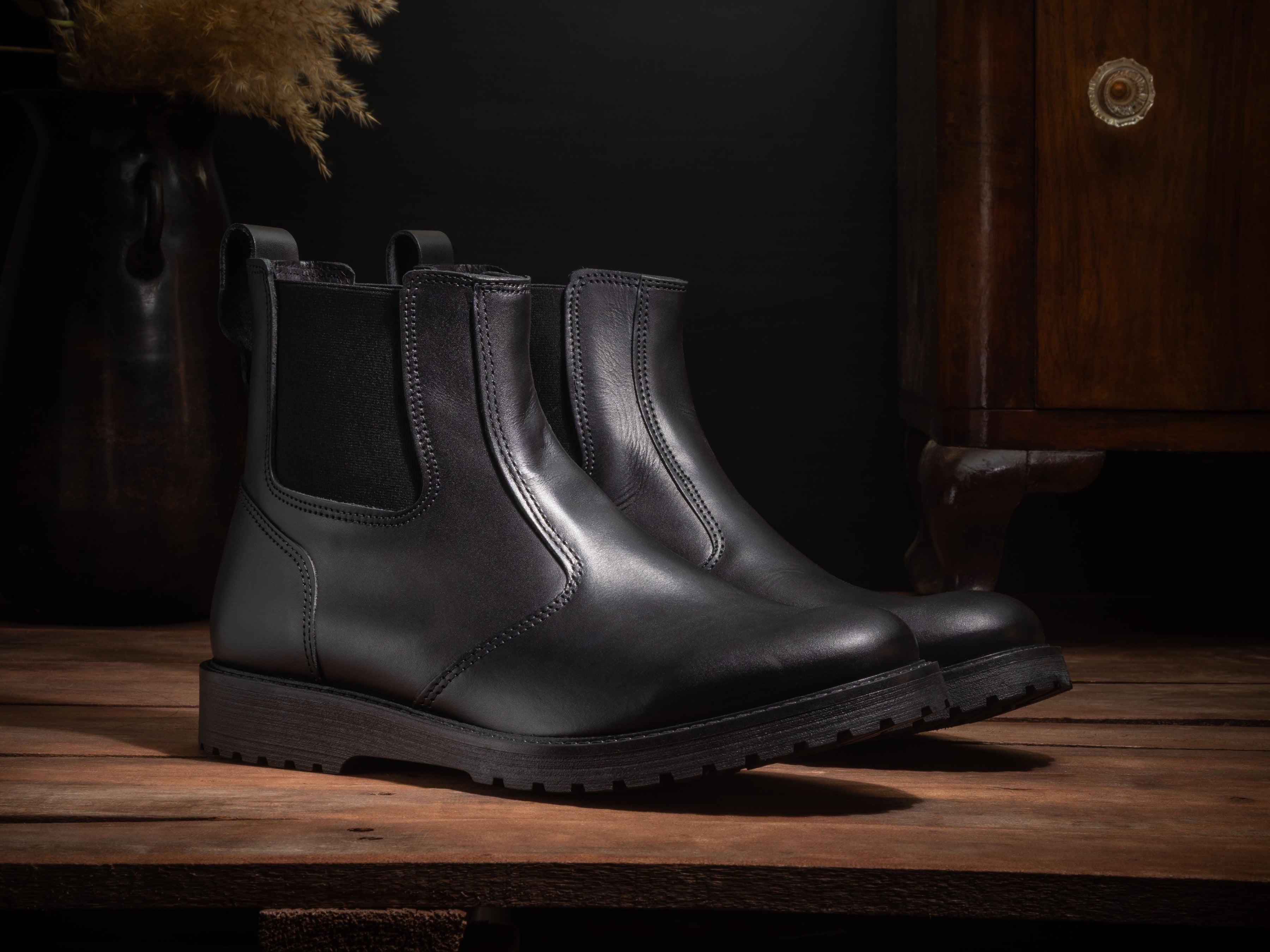 Men’s 5" (13 cm) top-grain leather Chelsea boots with elastic sides and a rear pull loop. Shown here in Satin Black. Handmade in Laconia, Greece, for comfort, durability, and real grip from weekday streets to weekend wander.