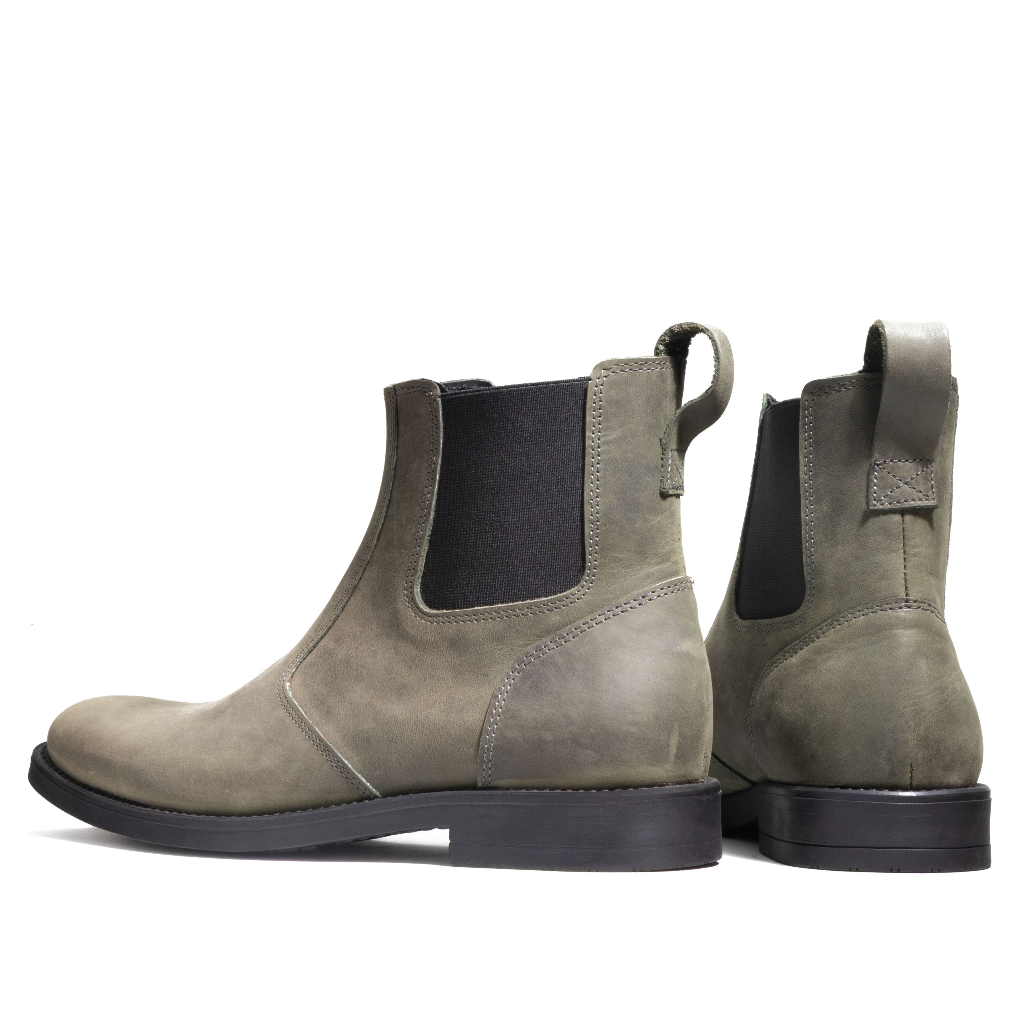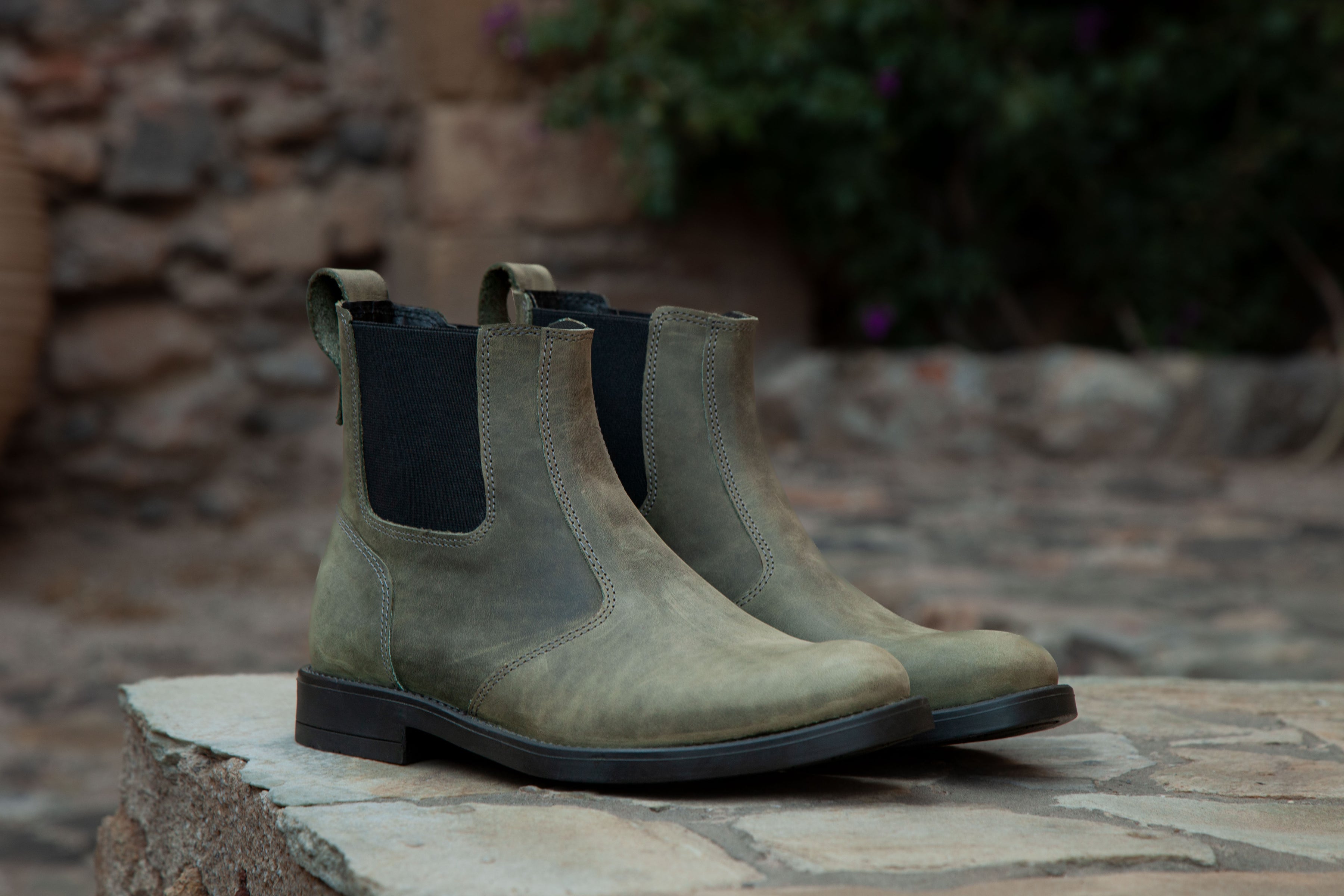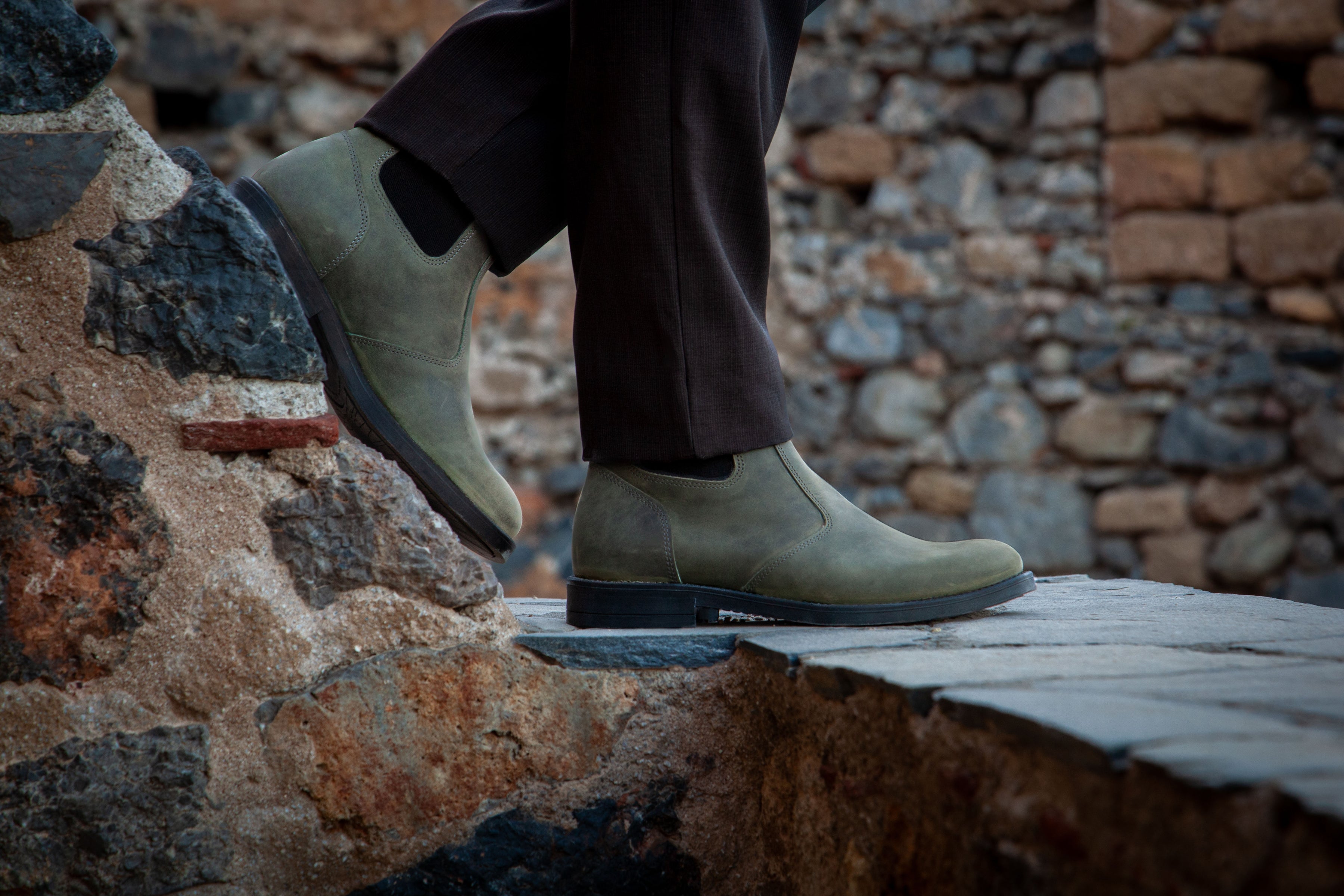 Men’s 5" (13 cm) top-grain leather Chelsea boots with elastic sides and a rear pull loop. Shown here in Cypress Green. Handmade in Laconia, Greece, for comfort, durability, and real grip from weekday streets to weekend wander.