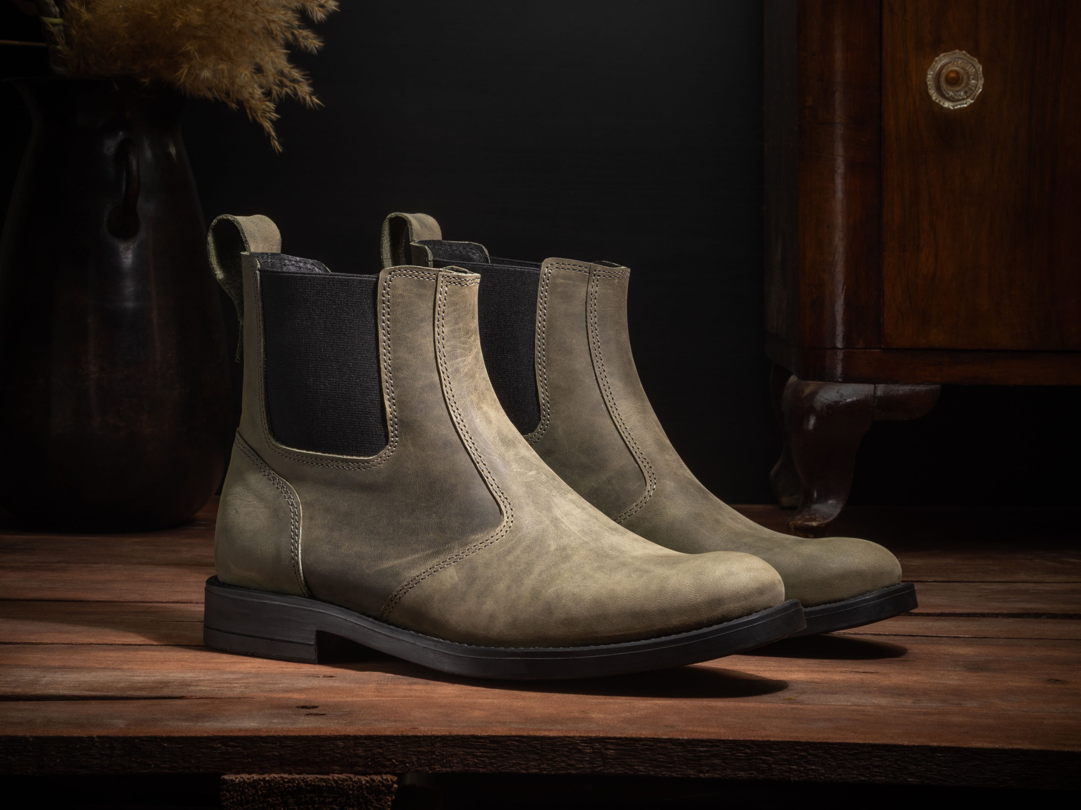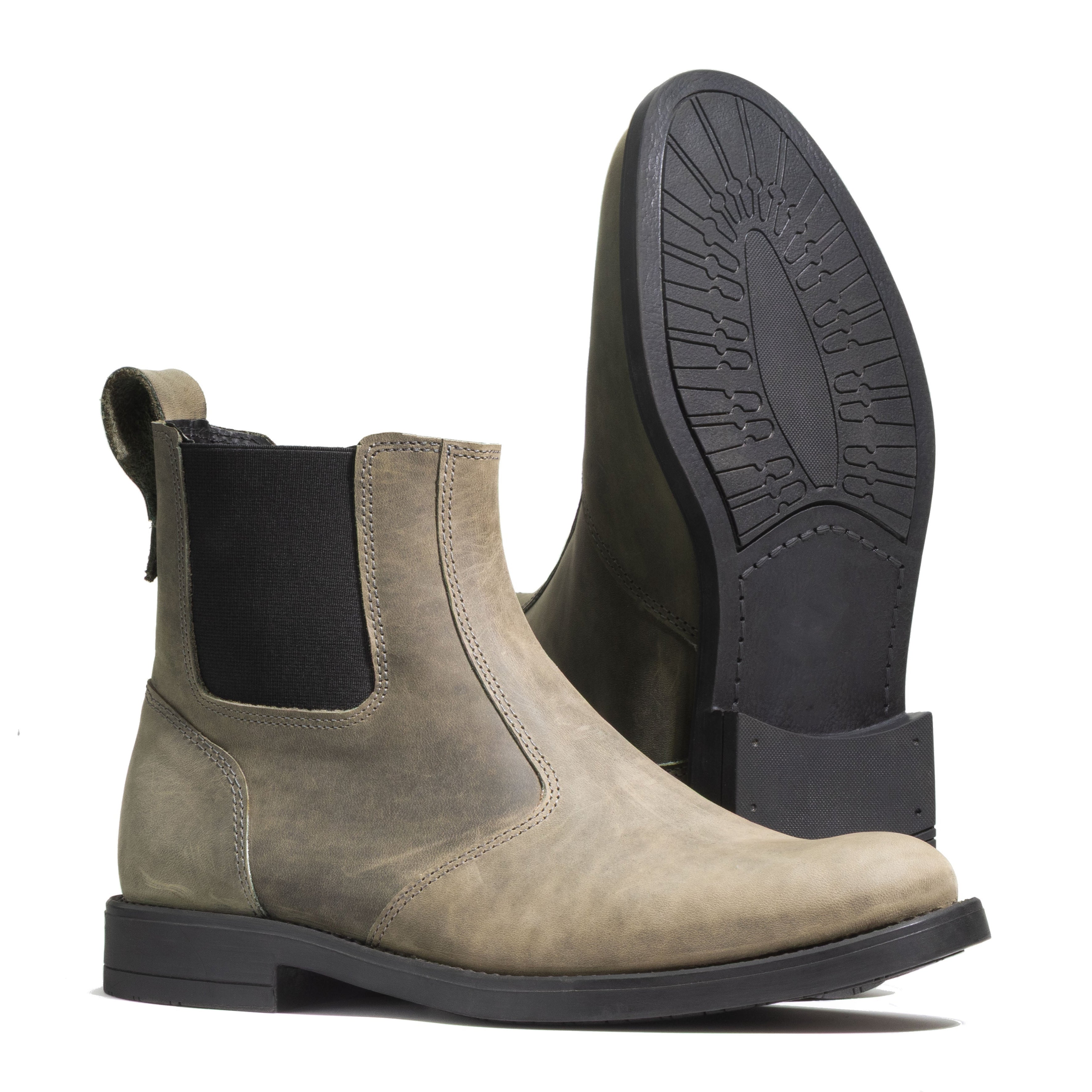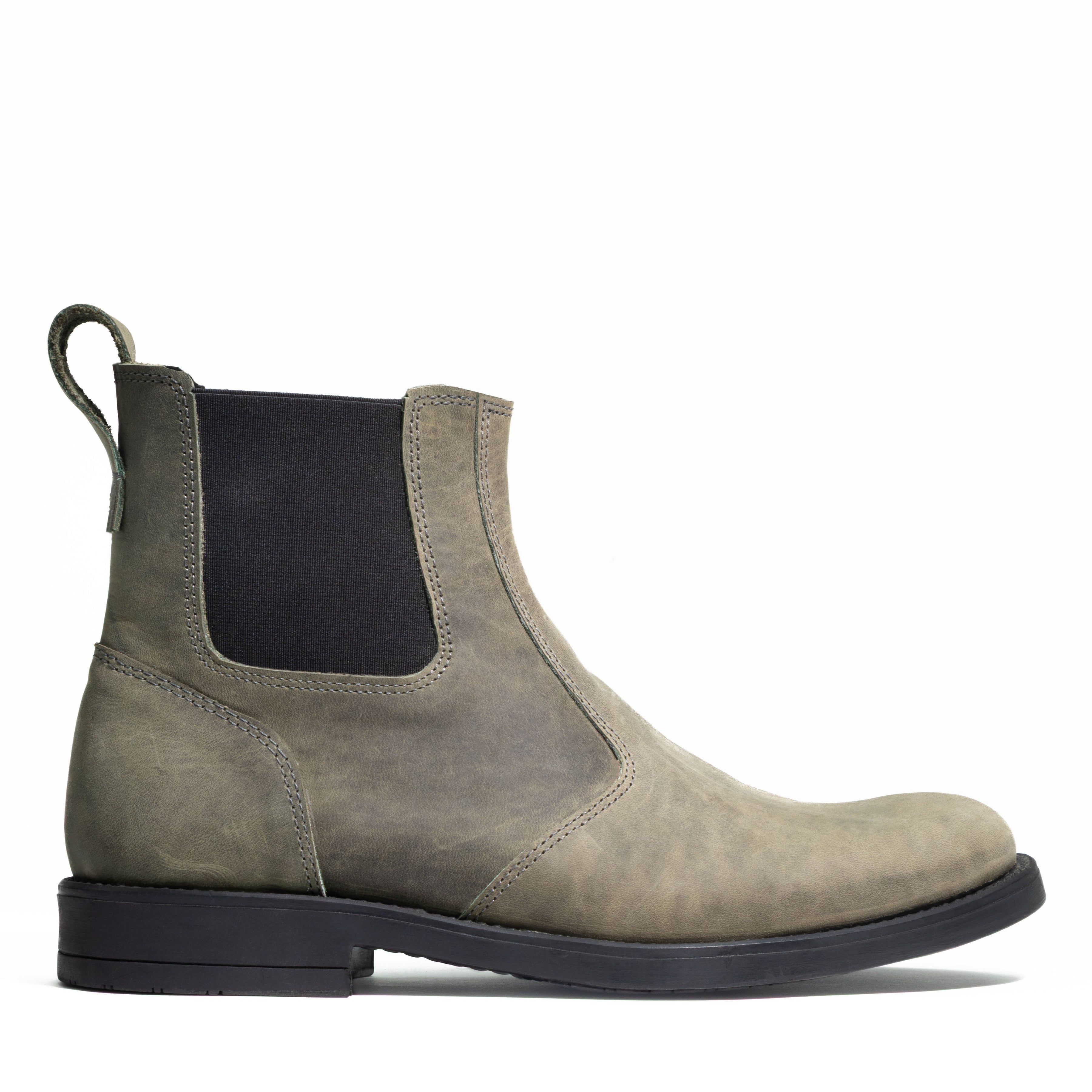Men’s 5" (13 cm) top-grain leather Chelsea boots with elastic sides and a rear pull loop. Shown here in Cypress Green. Handmade in Laconia, Greece, for comfort, durability, and real grip from weekday streets to weekend wander.
