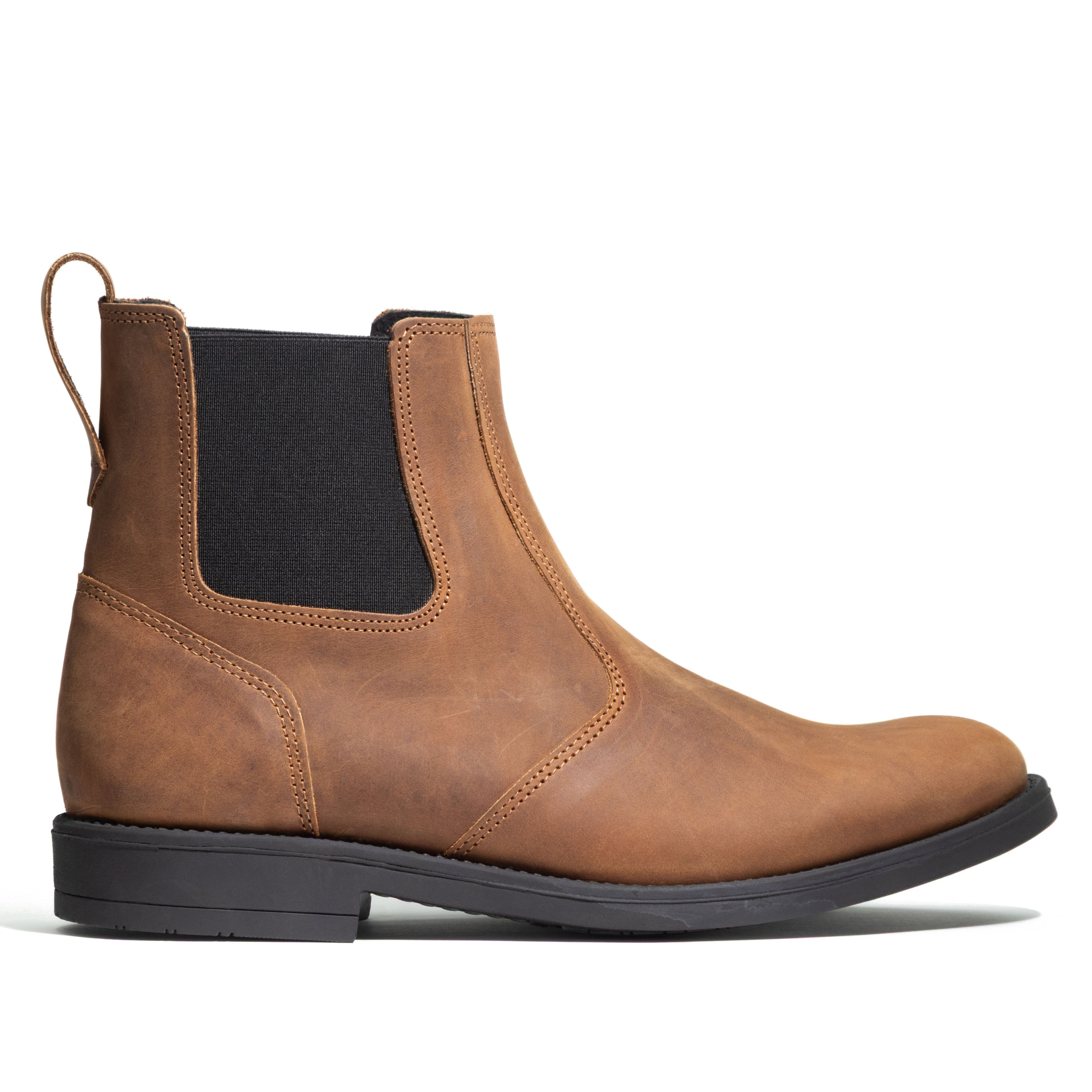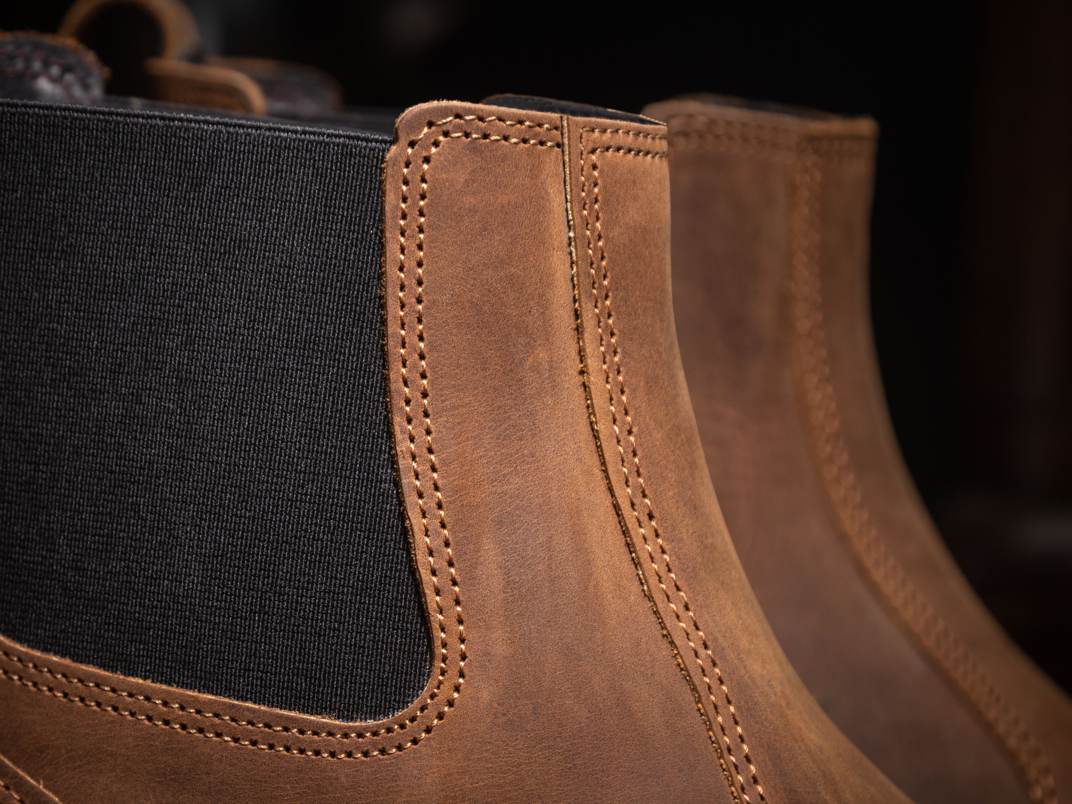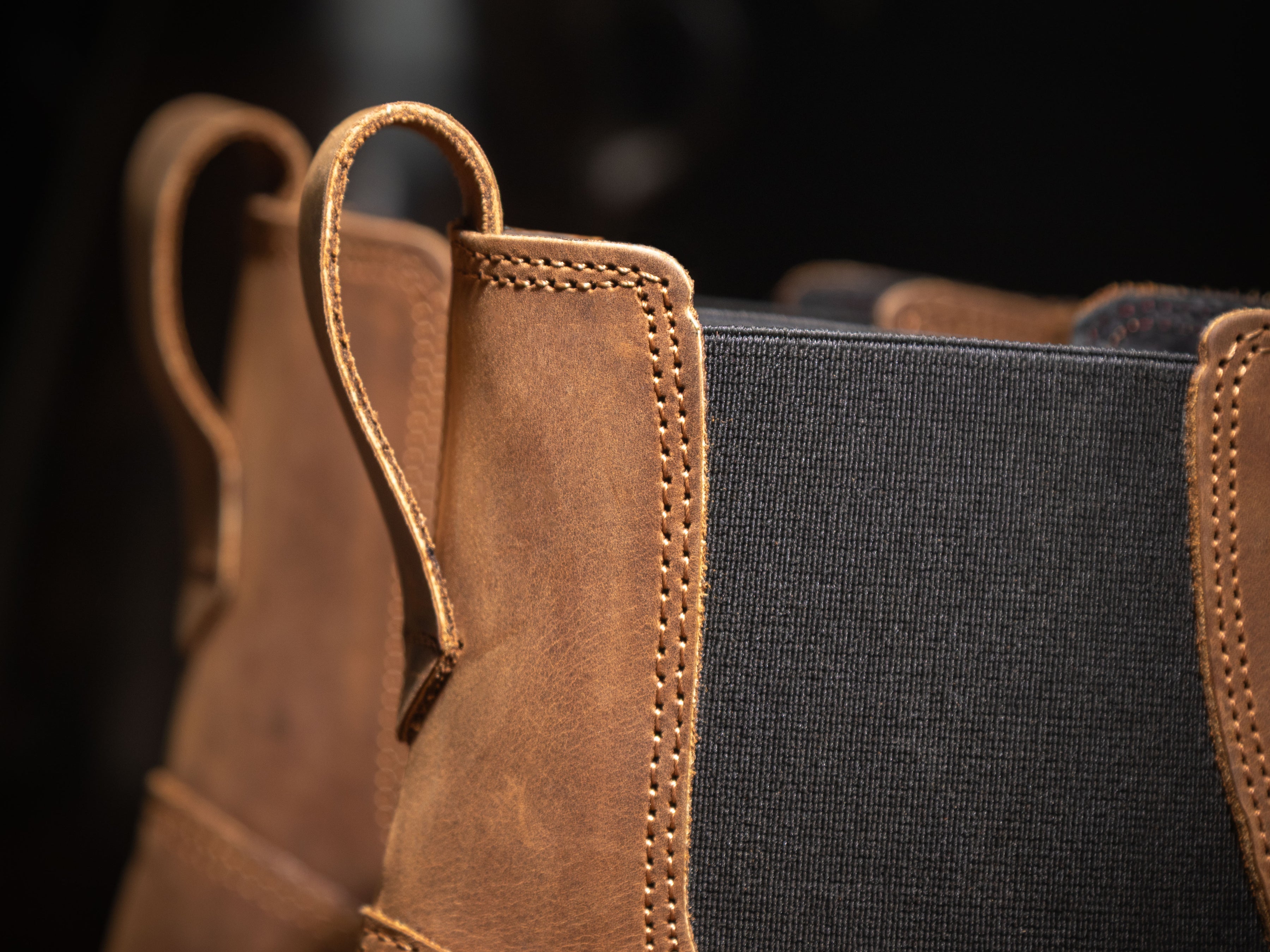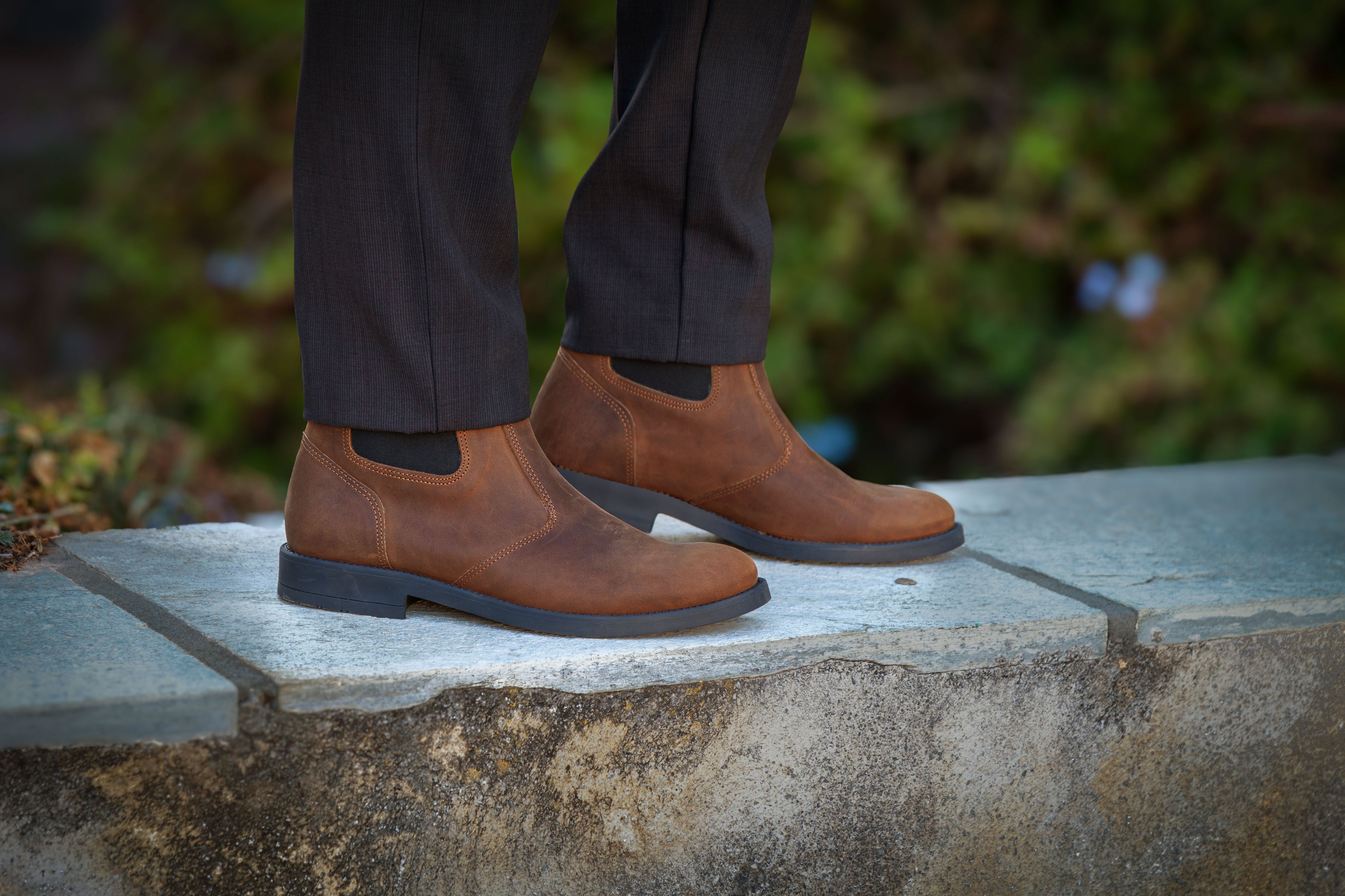 Men’s 5" (13 cm) top-grain leather Chelsea boots with elastic sides and a rear pull loop. Shown here in Rustic Brown. Handmade in Laconia, Greece, for comfort, durability, and real grip from weekday streets to weekend wander.