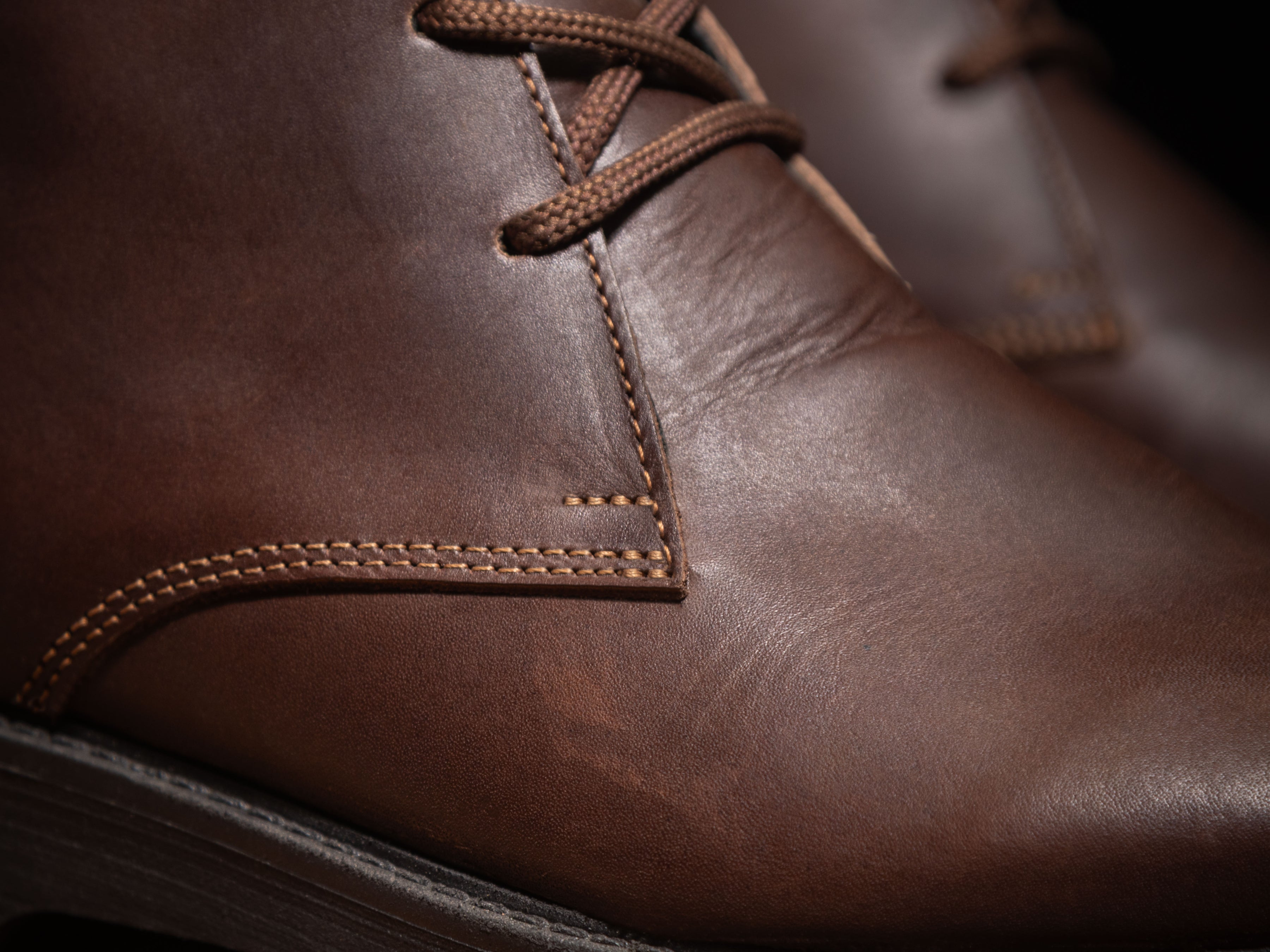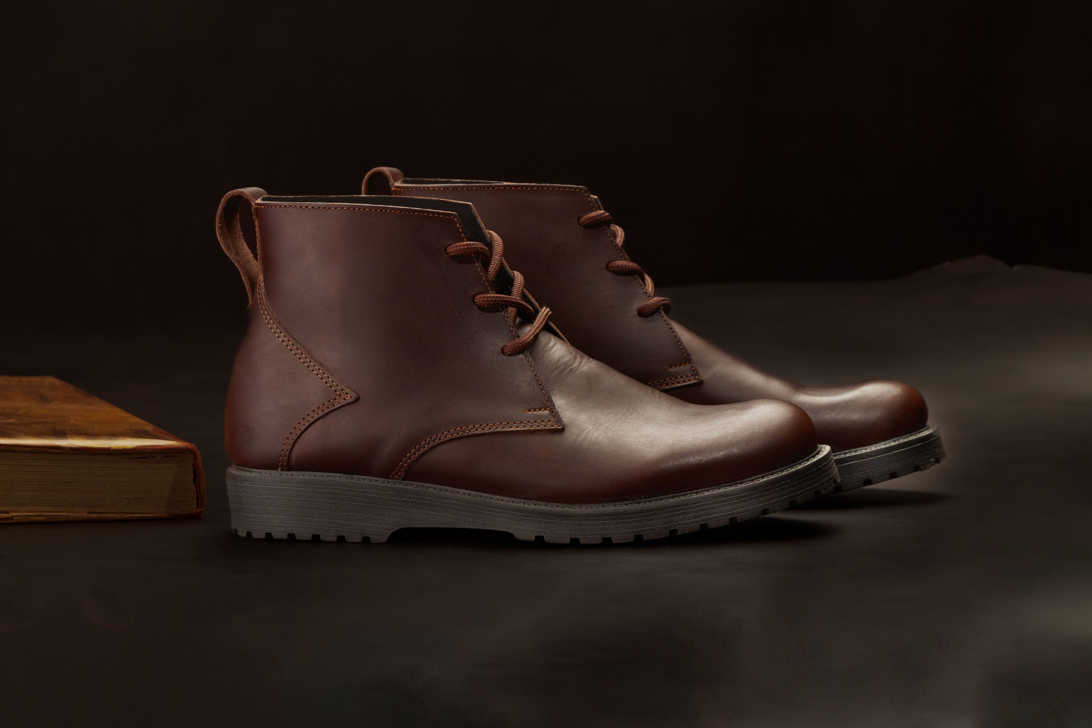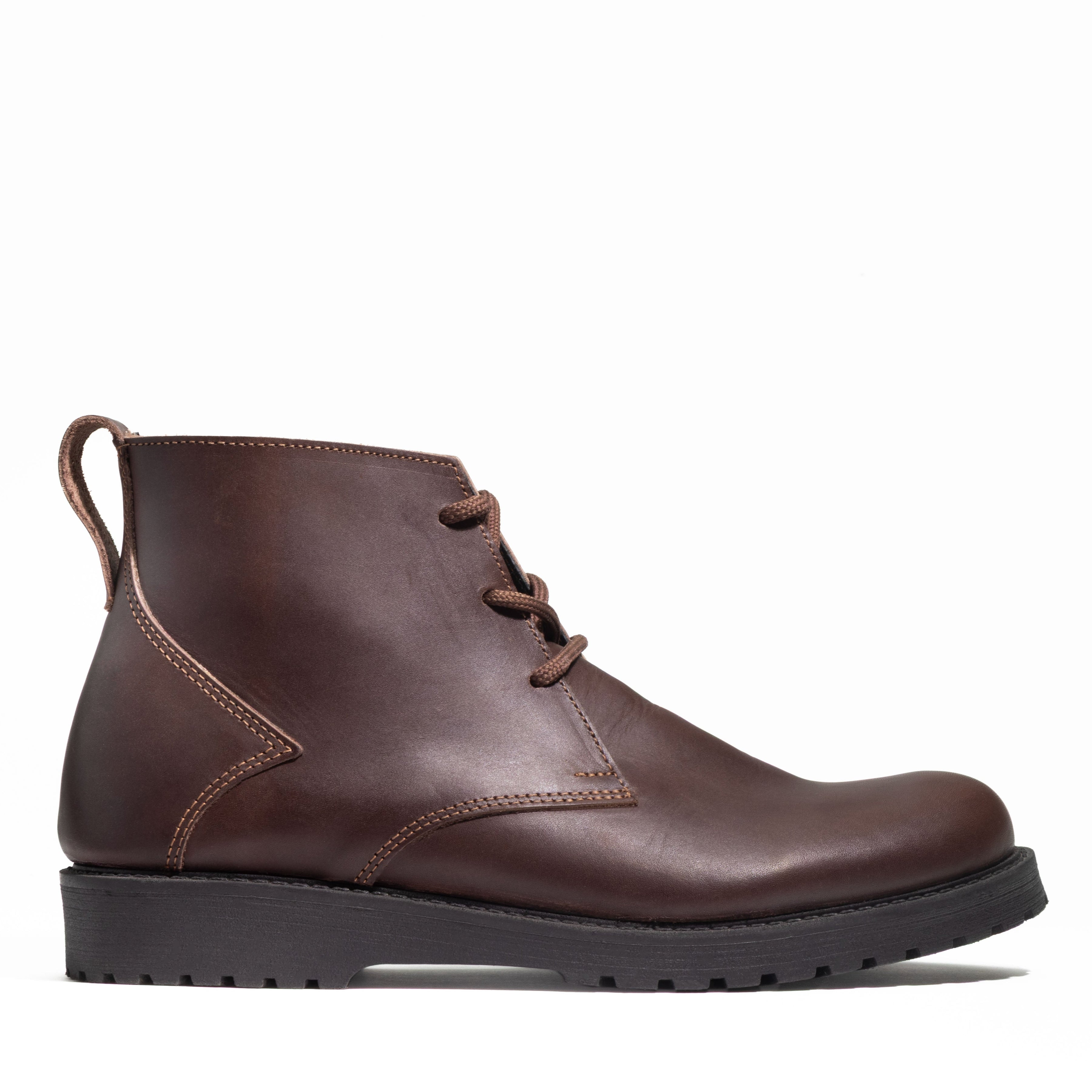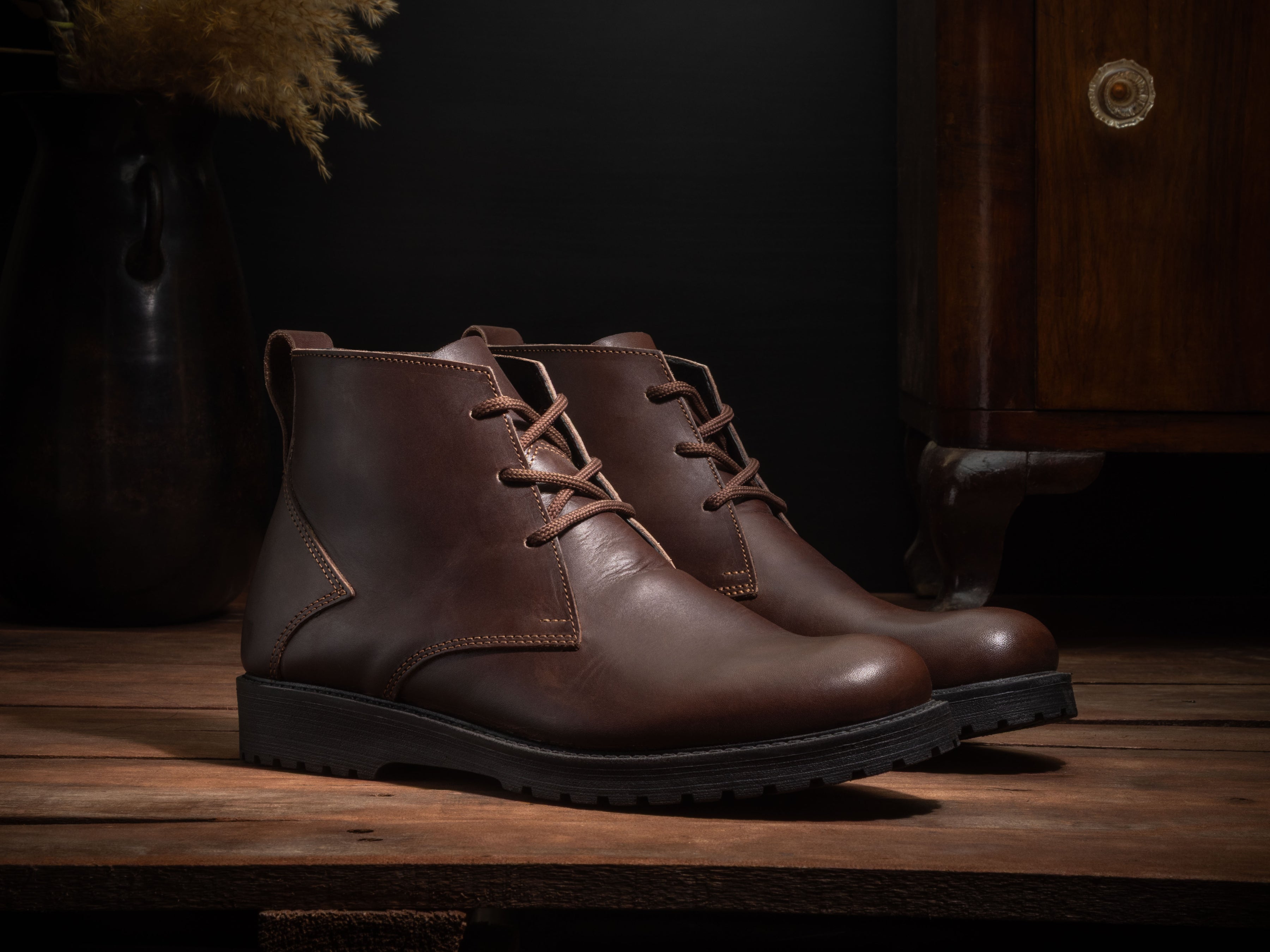 Men’s 5" (13 cm) top-grain leather chukka with a 3-eyelet lace and rear pull loop. Shown here in Waxed Camel. Handmade in Laconia, Greece, delivering comfort, durability, and grip from city streets to weekend wander.