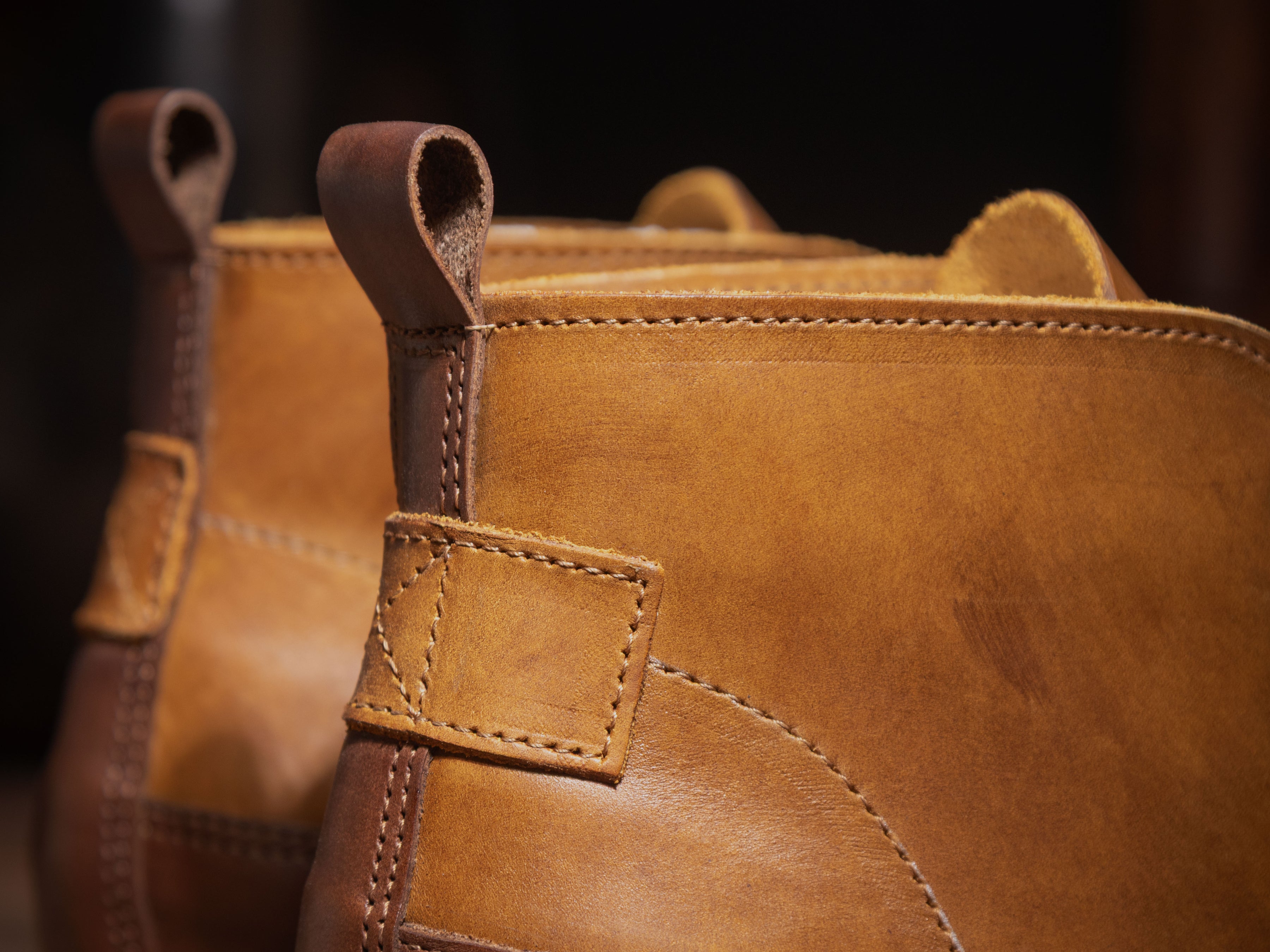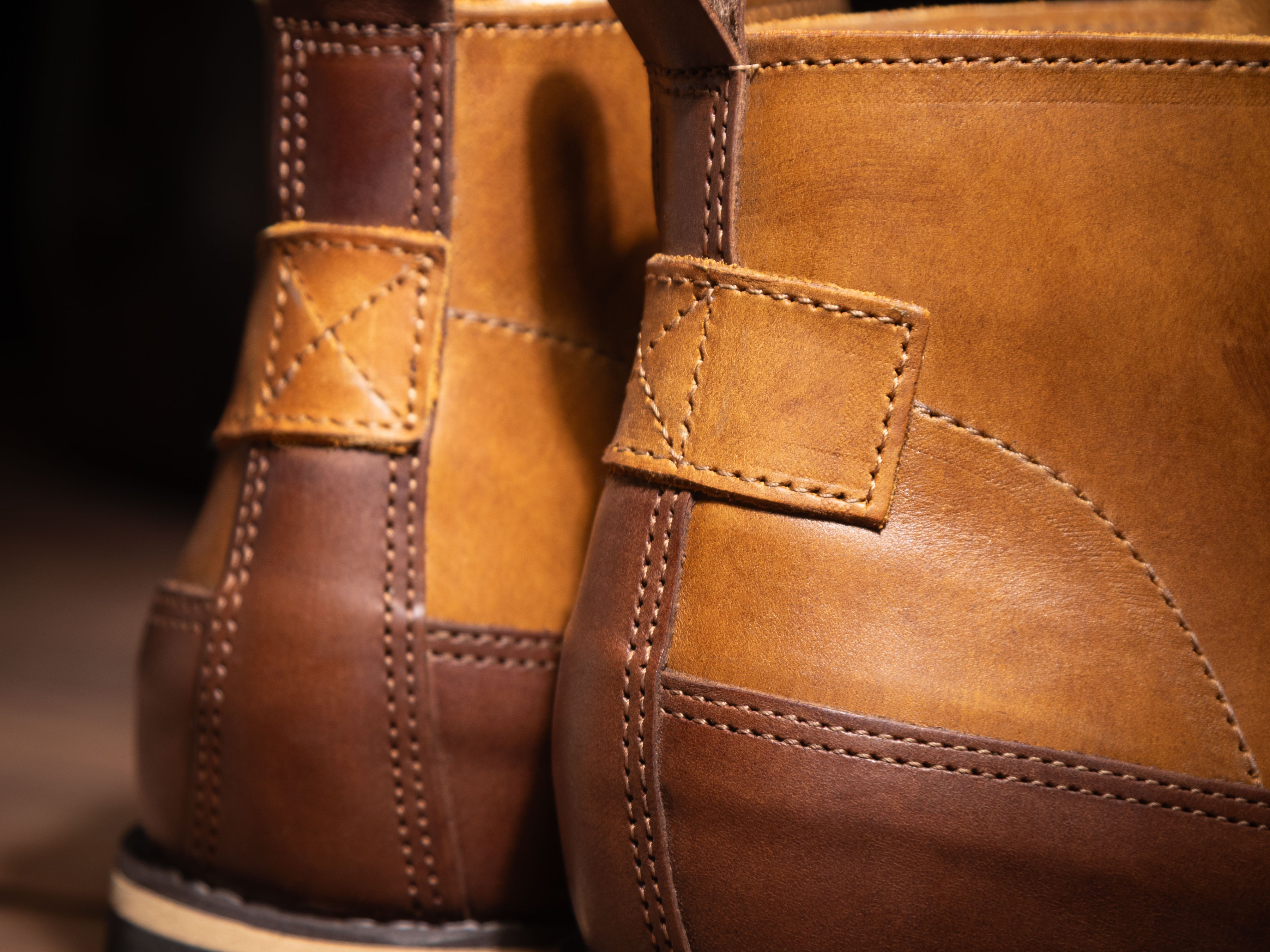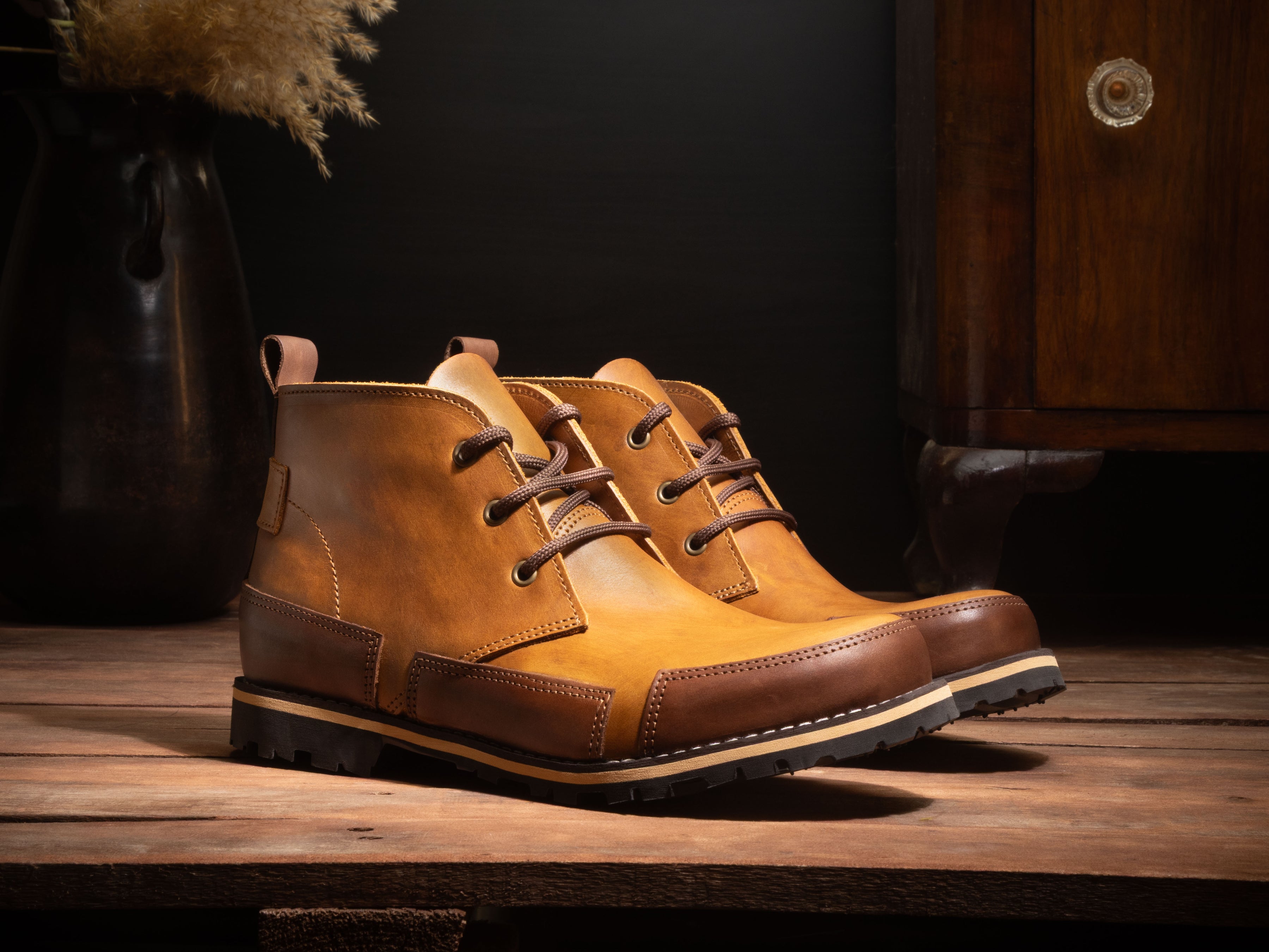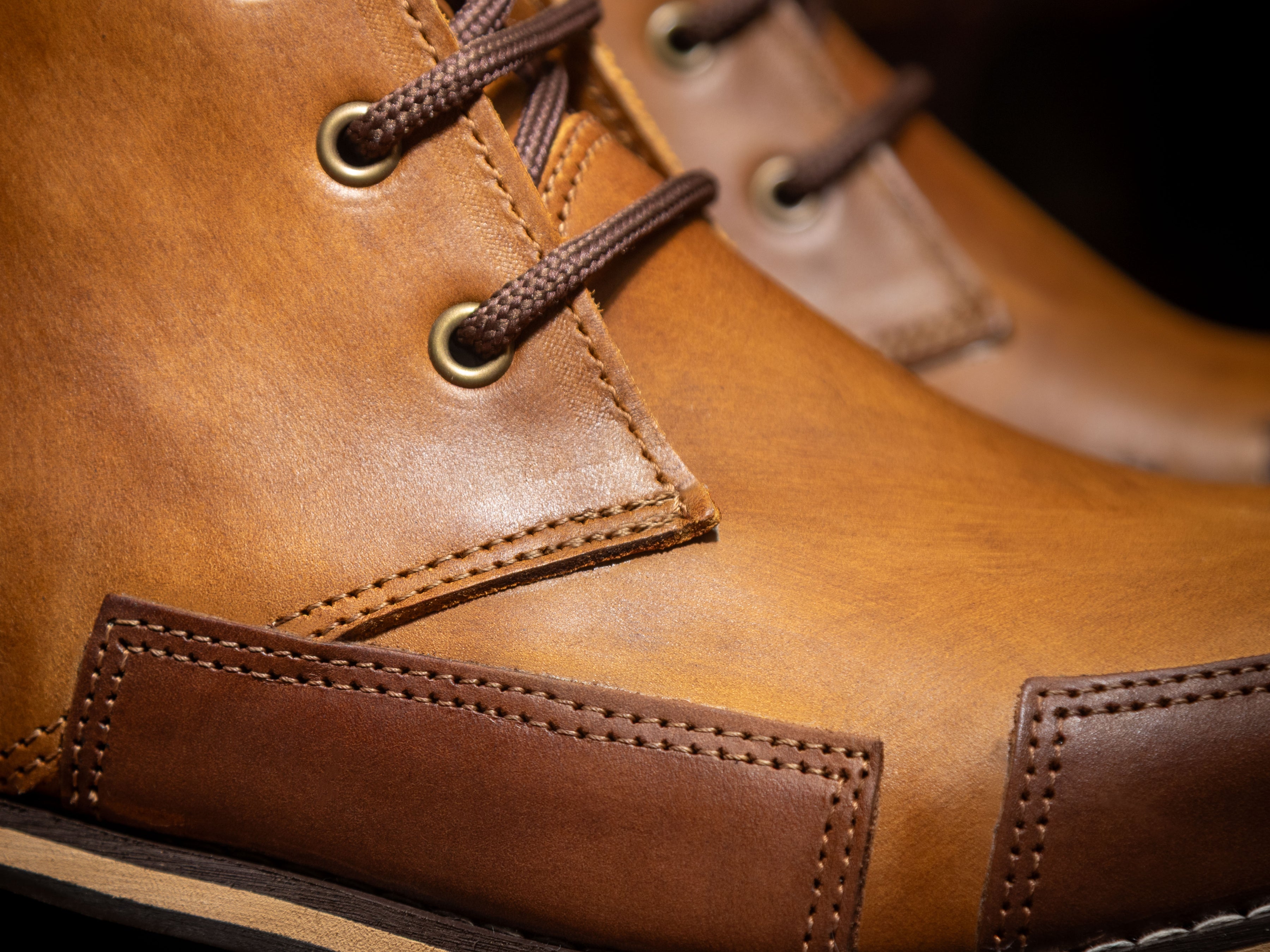 - Two premium sole options — (1) Vibram® full rubber lug, (2) Vibram® dual pad with wooden heel + leather midsole