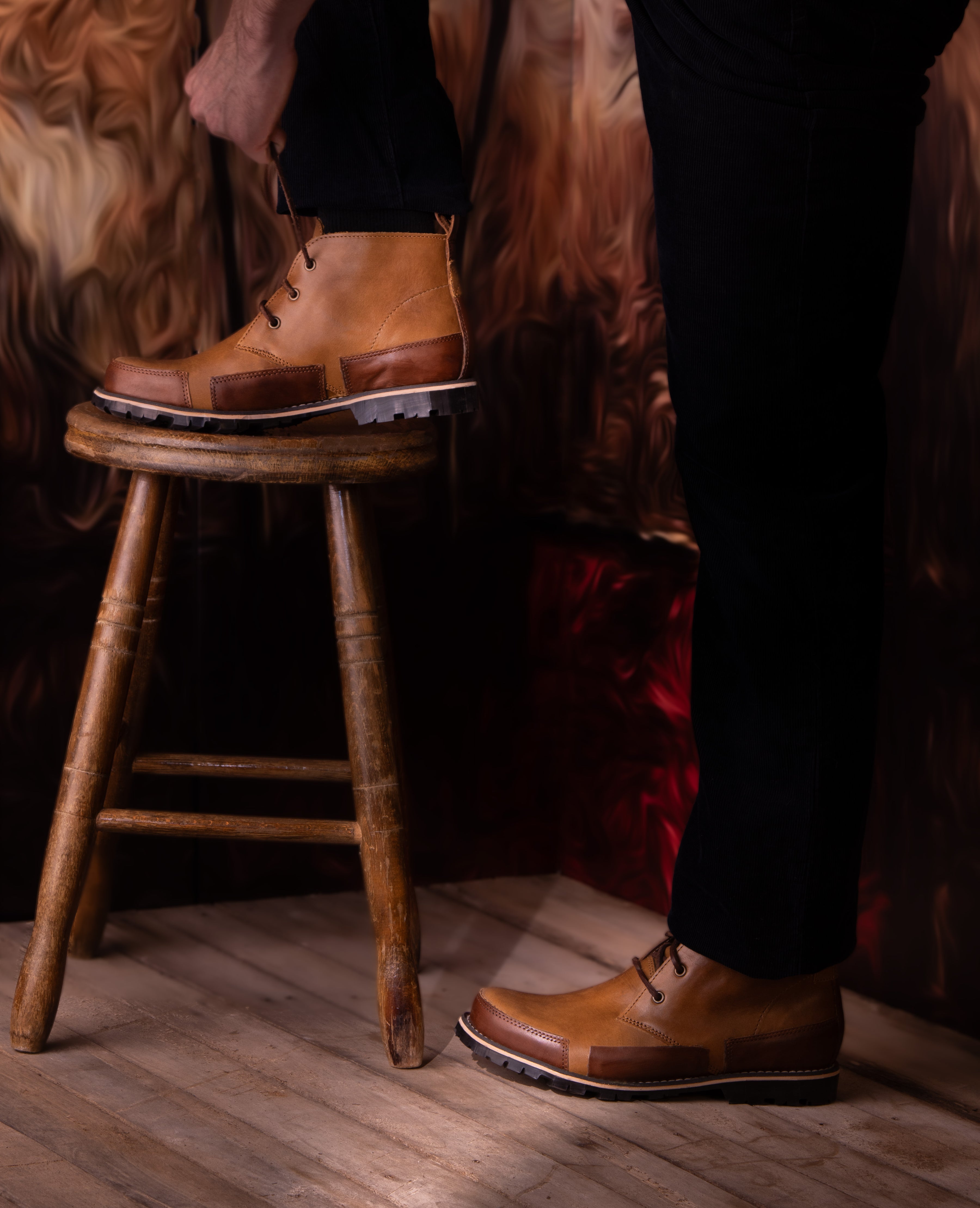 Men’s 5" (13 cm) top-grain leather lace-ups with a rugged, scratch-resistant build. The GERAK’s patchwork option adds visual edge and structure. Handmade and tested in the rugged mountains of Laconia, Greece. Comfort, durability, and grip for all terrains—from winter streets to weekend trails.
