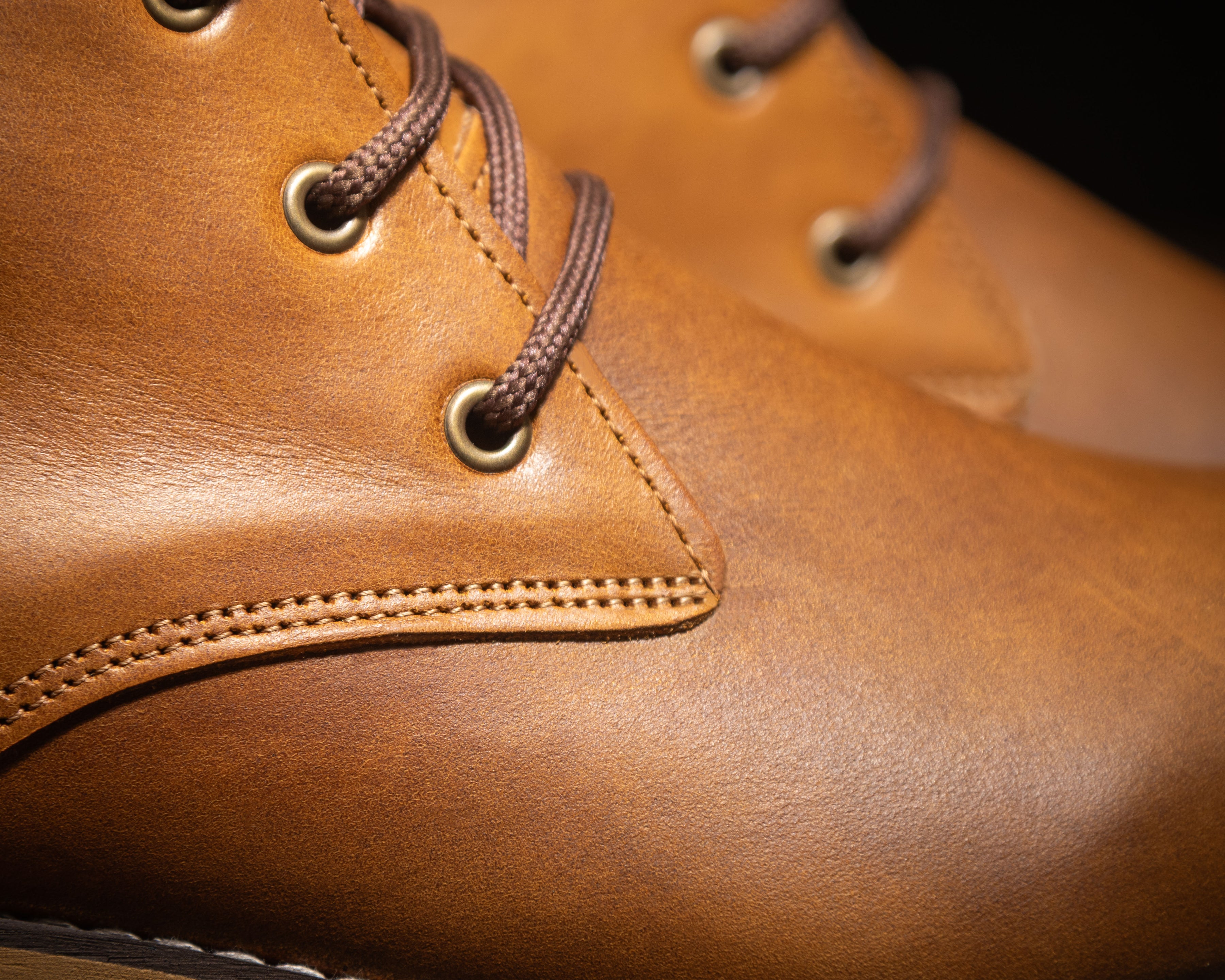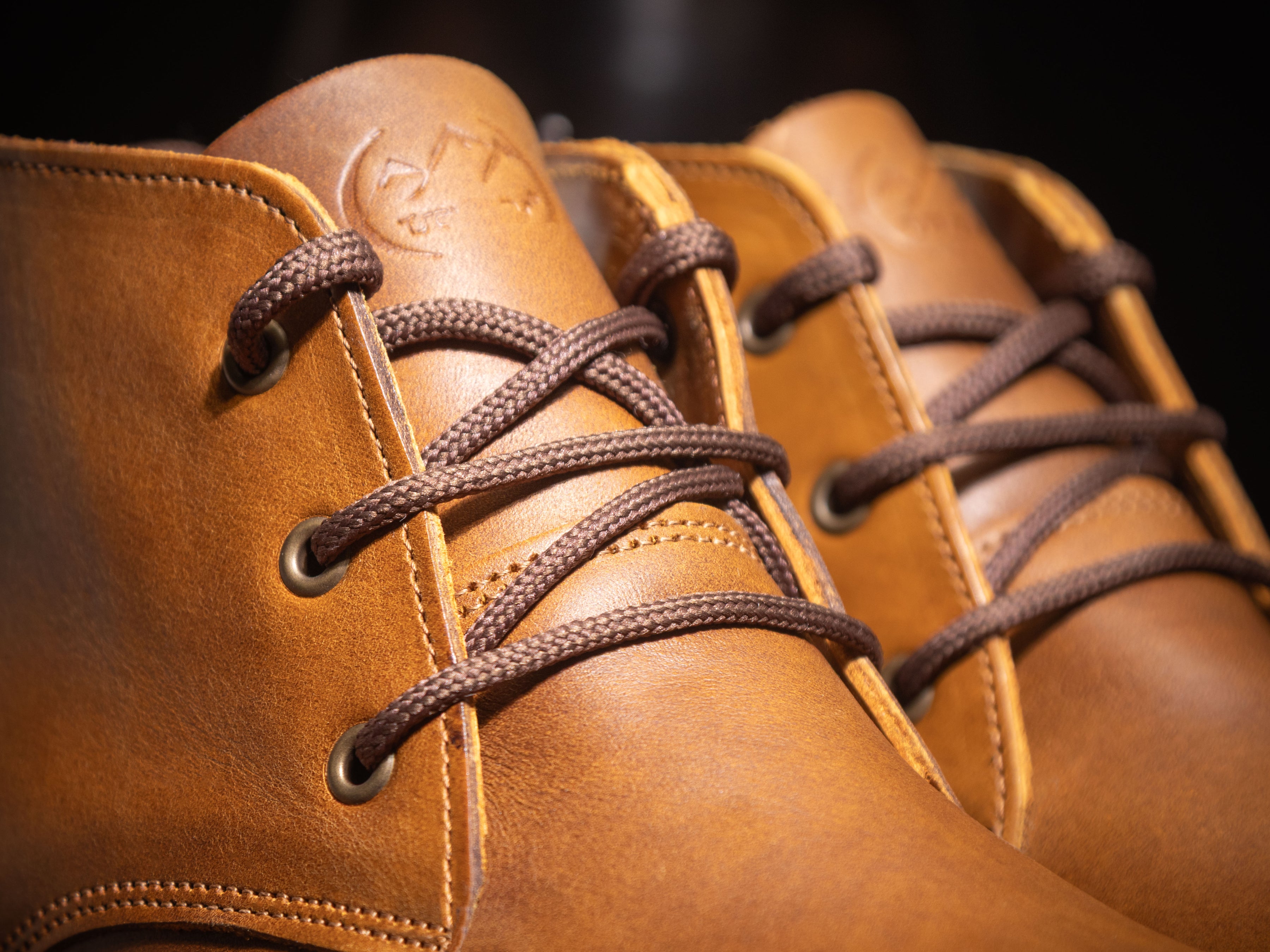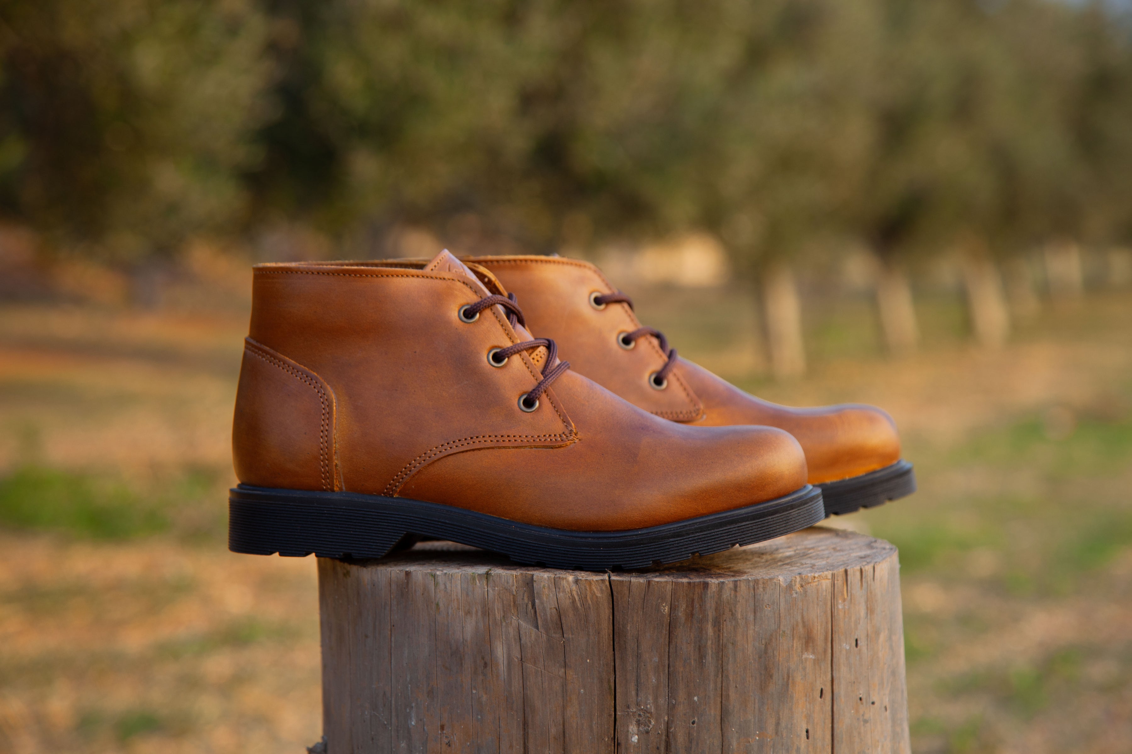 Men’s 4" (10 cm) top-grain leather lace-ups with a clean, contemporary sole. Shown in Waxed Tobacco. Handmade and tested in Laconia, Greece, for comfort, durability, and real grip for city days and weekend wander.