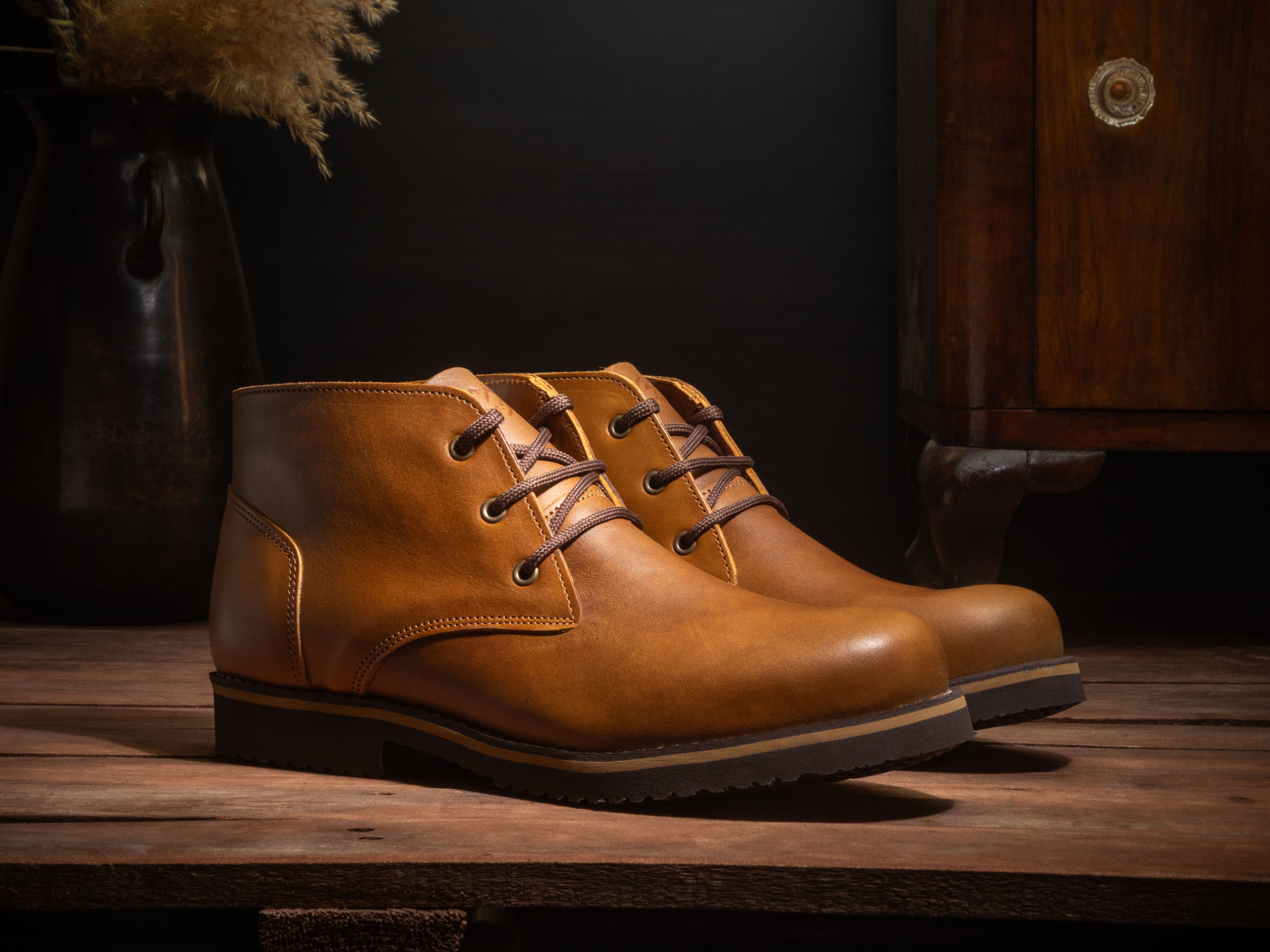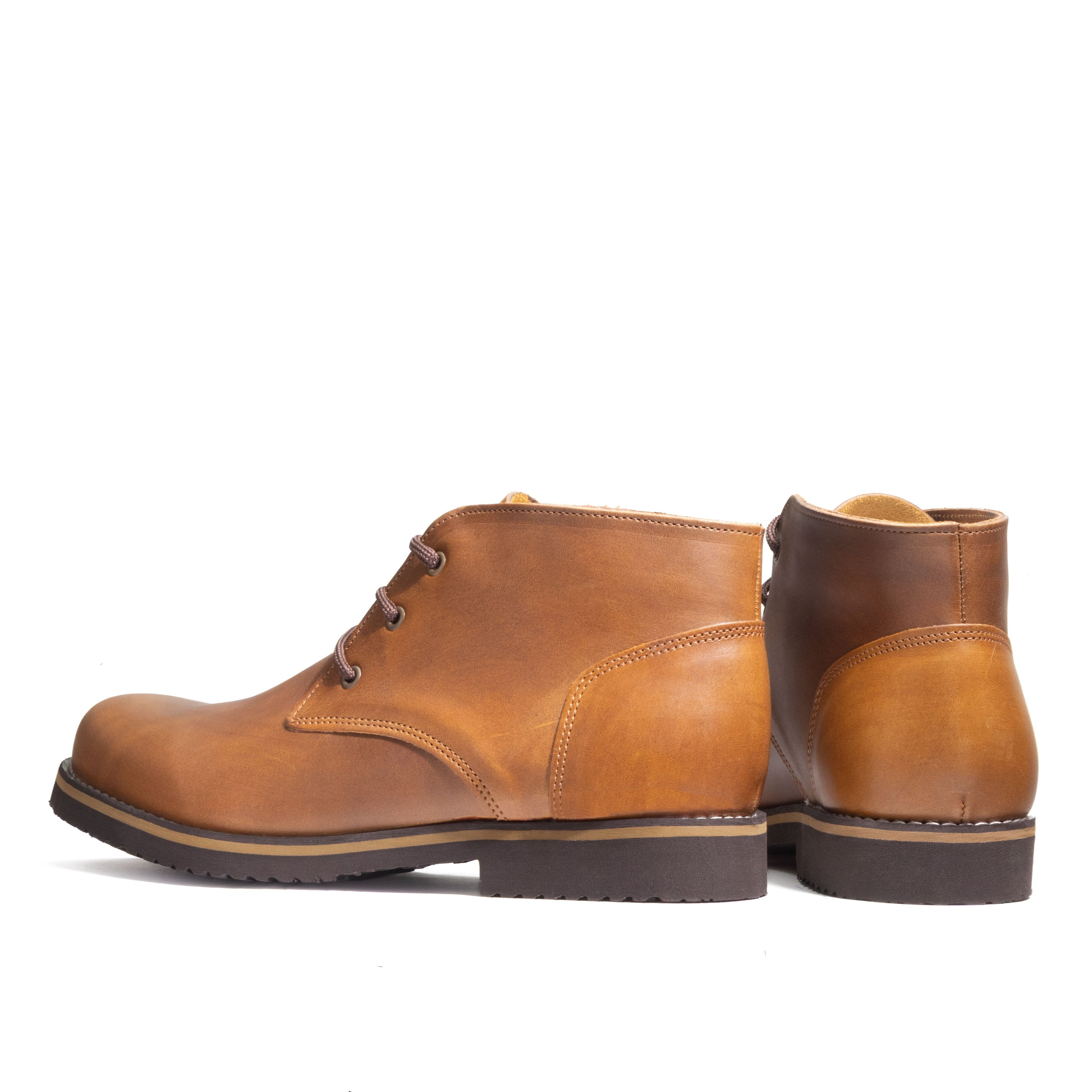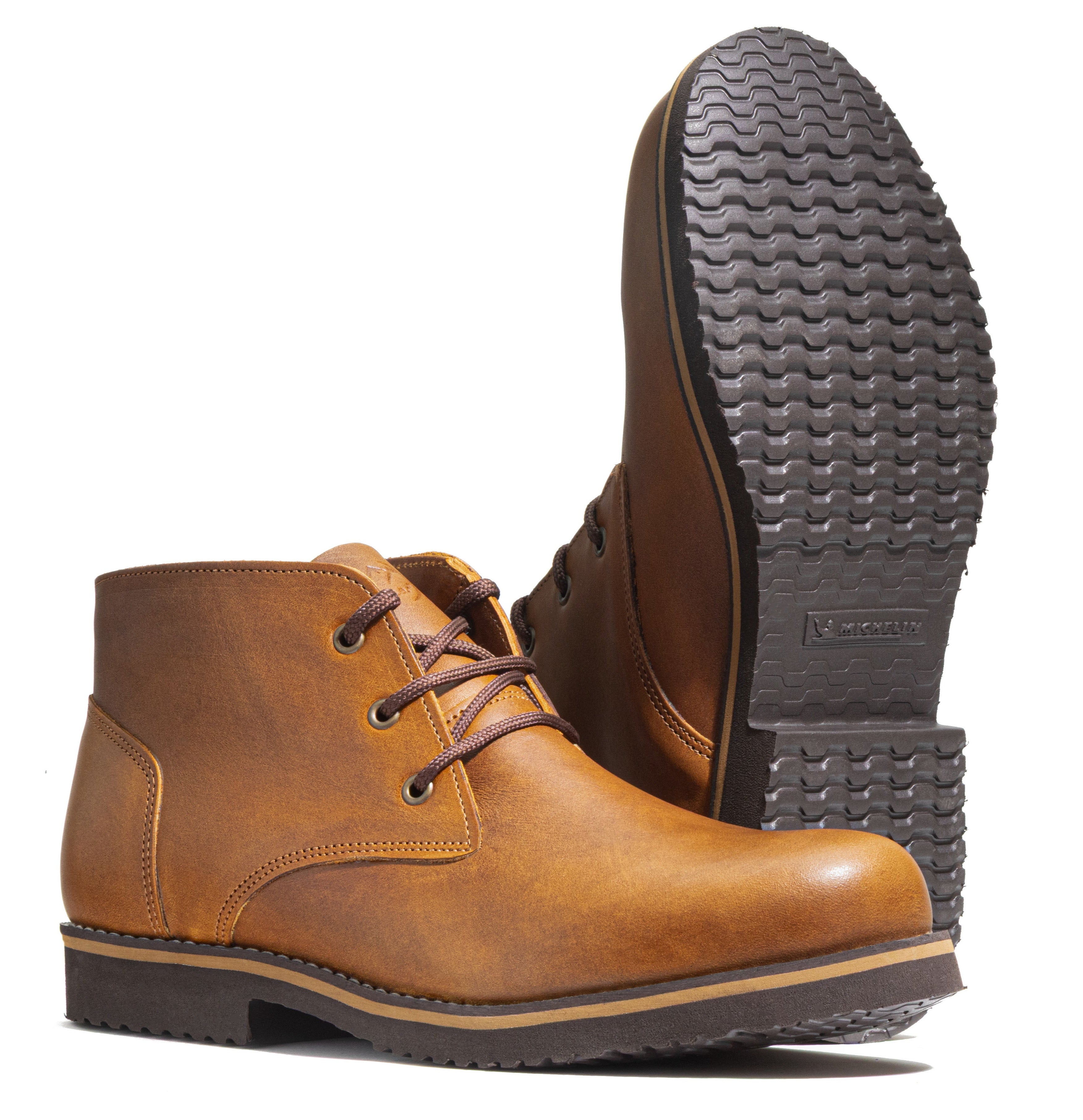 Men’s 4" (10 cm) top-grain leather lace-ups with a clean, contemporary sole. Shown in Waxed Tobacco. Handmade and tested in Laconia, Greece, for comfort, durability, and real grip for city days and weekend wander.