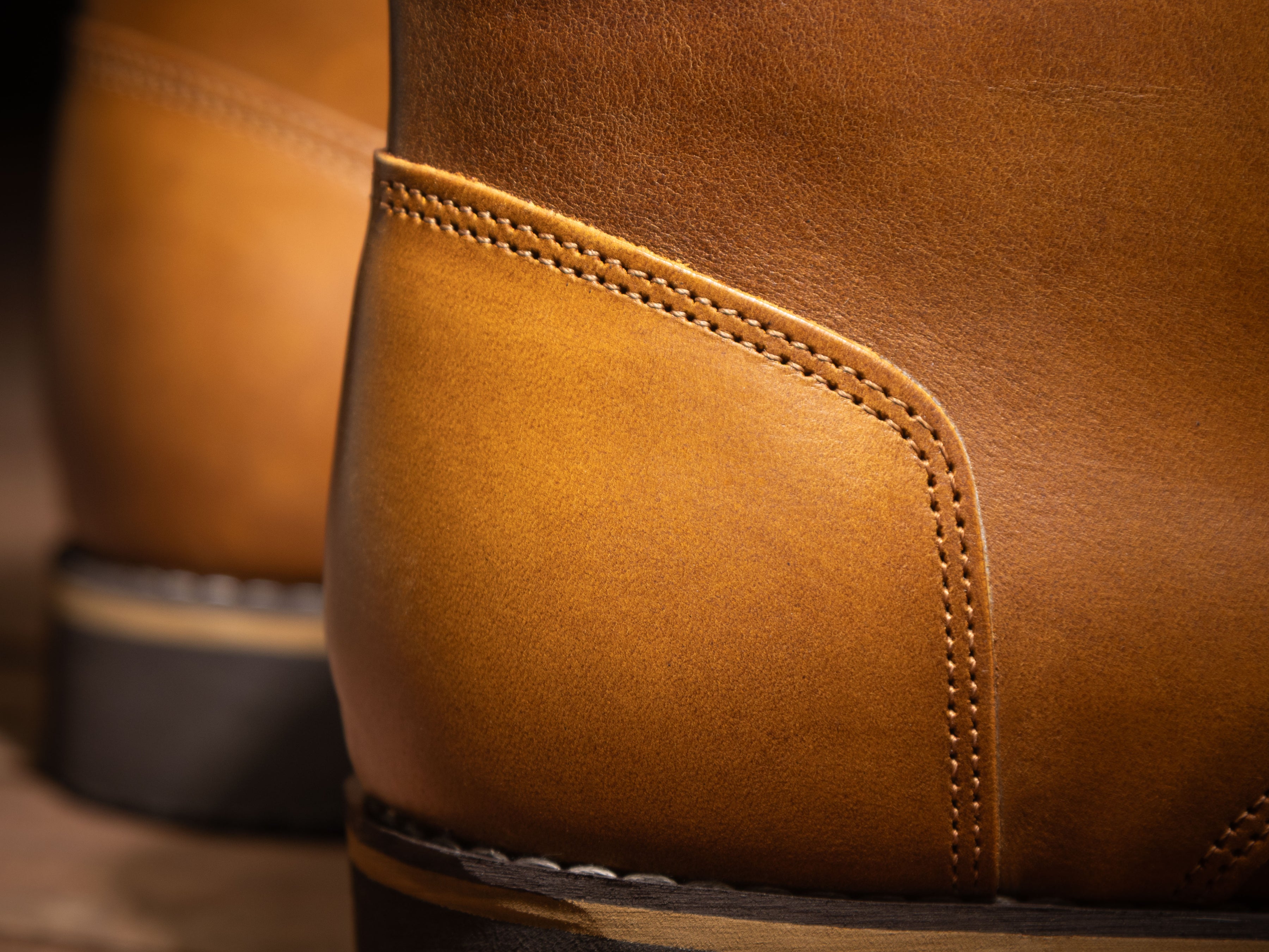 - Two premium sole options — (1) Vibram® full rubber lug, (2) Vibram® dual pad with wooden heel + leather midsole
