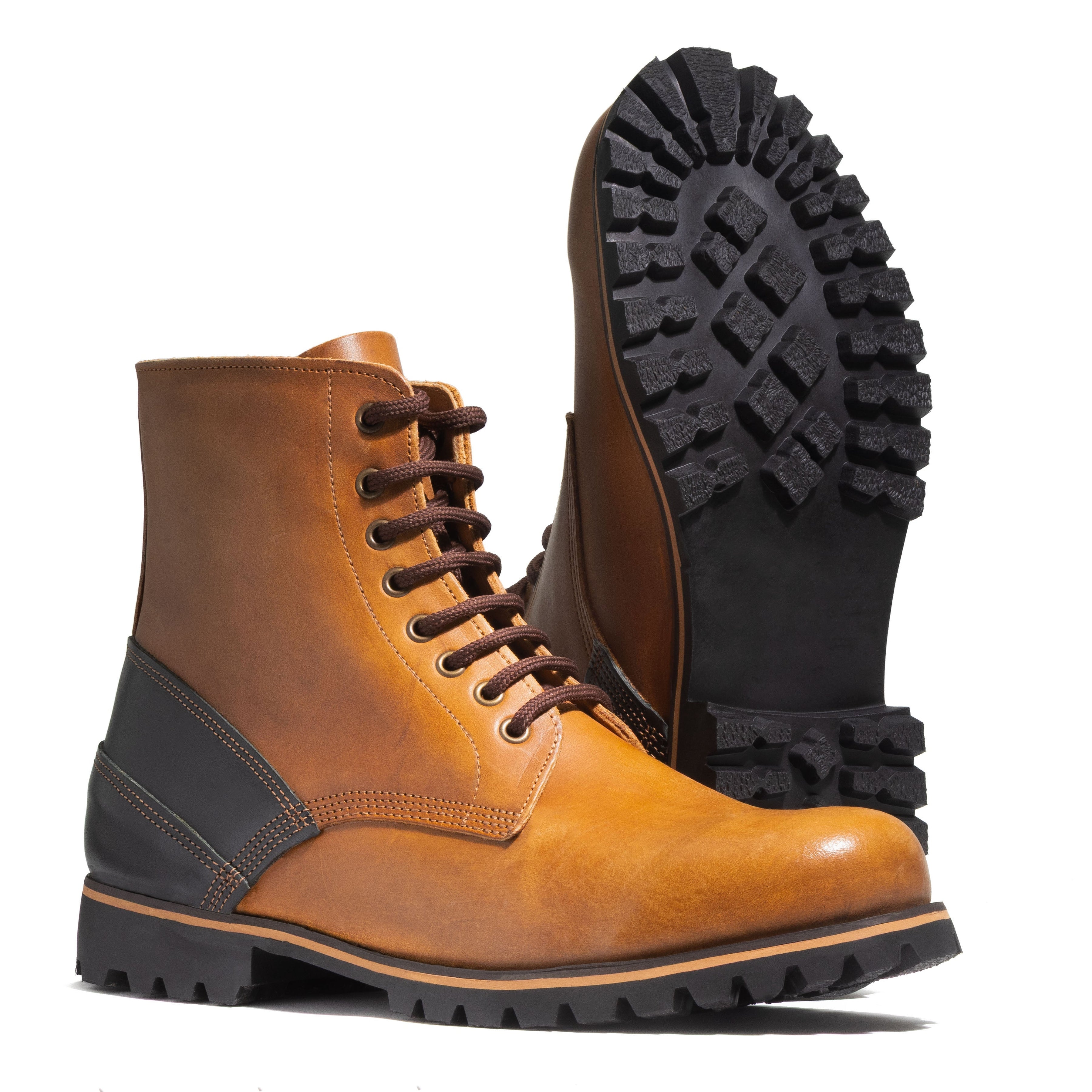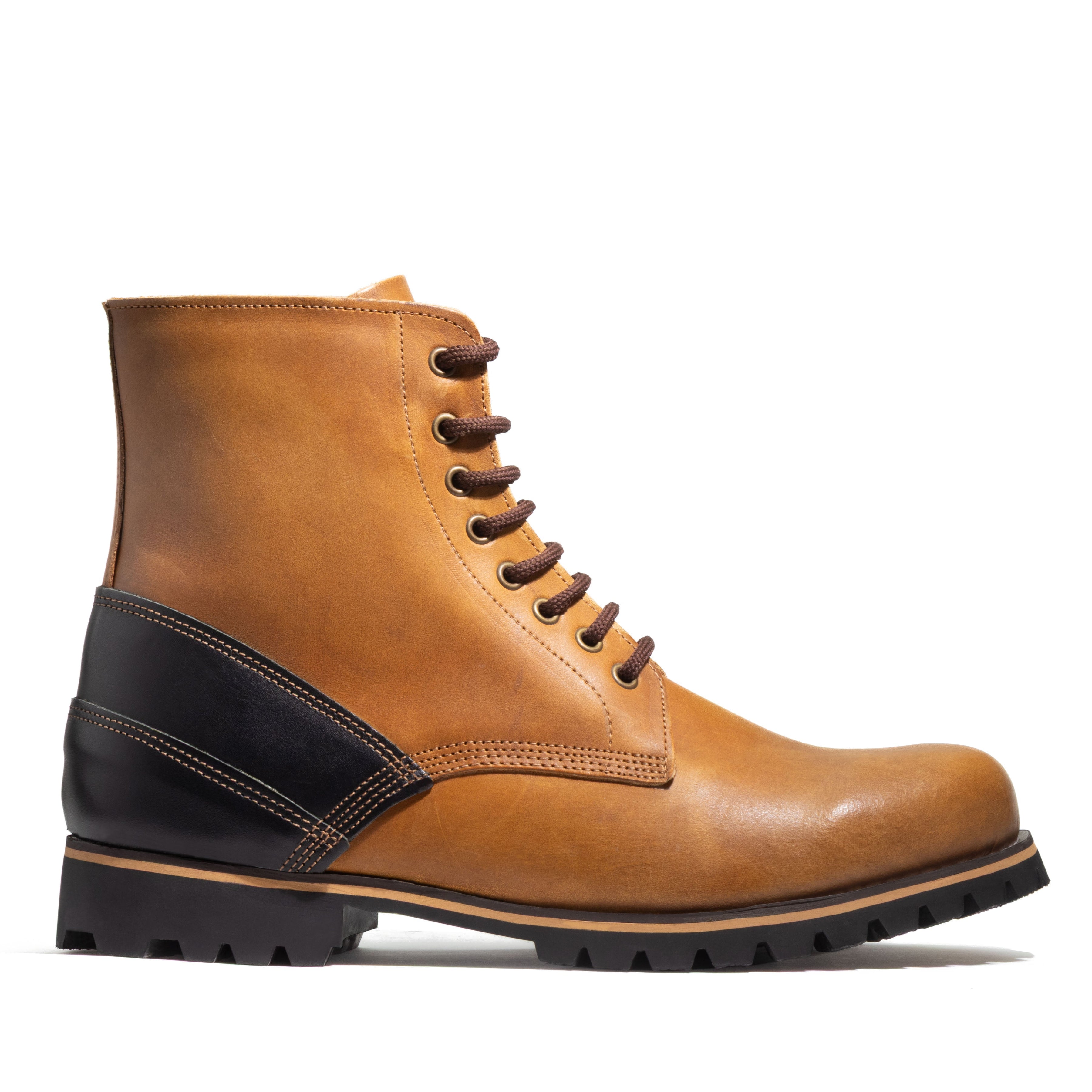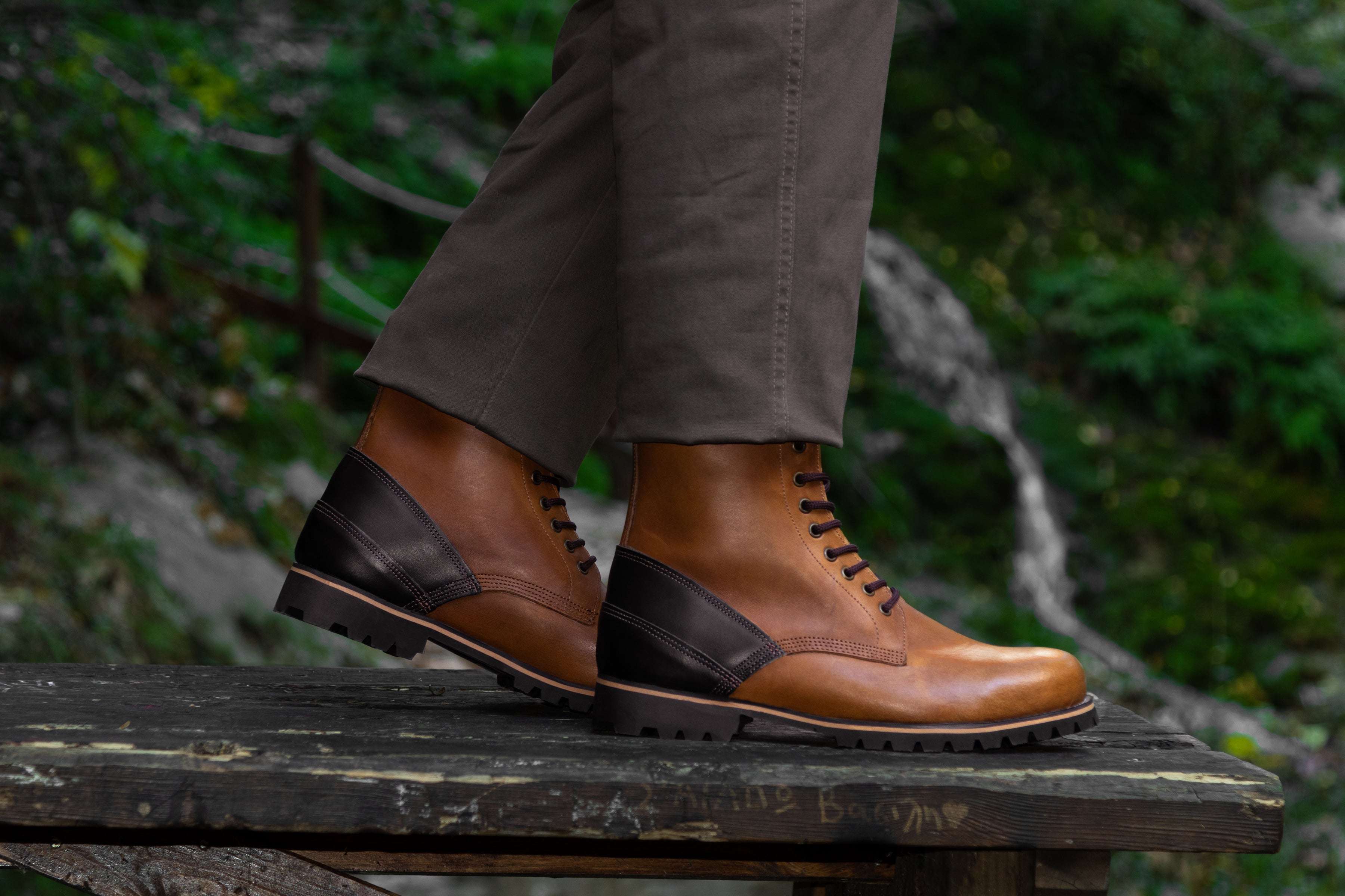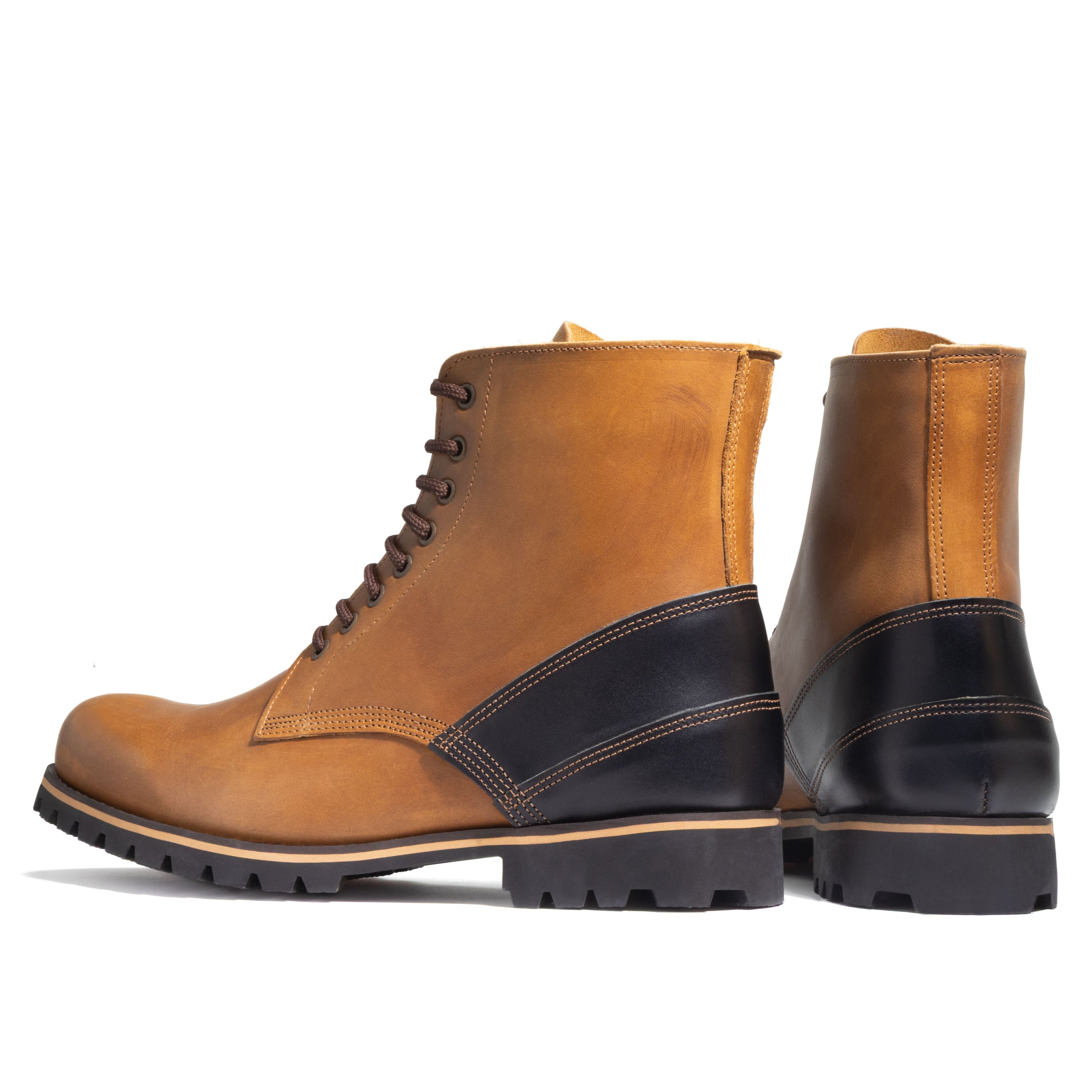 Men’s 8" (20 cm) top-grain lace-ups with a reinforced contrasting heel. Shown here in Waxed Tobacco. Handmade and tested in the mountains of Laconia, Greece, delivering durability, support, and grip from winter streets to rugged trails.