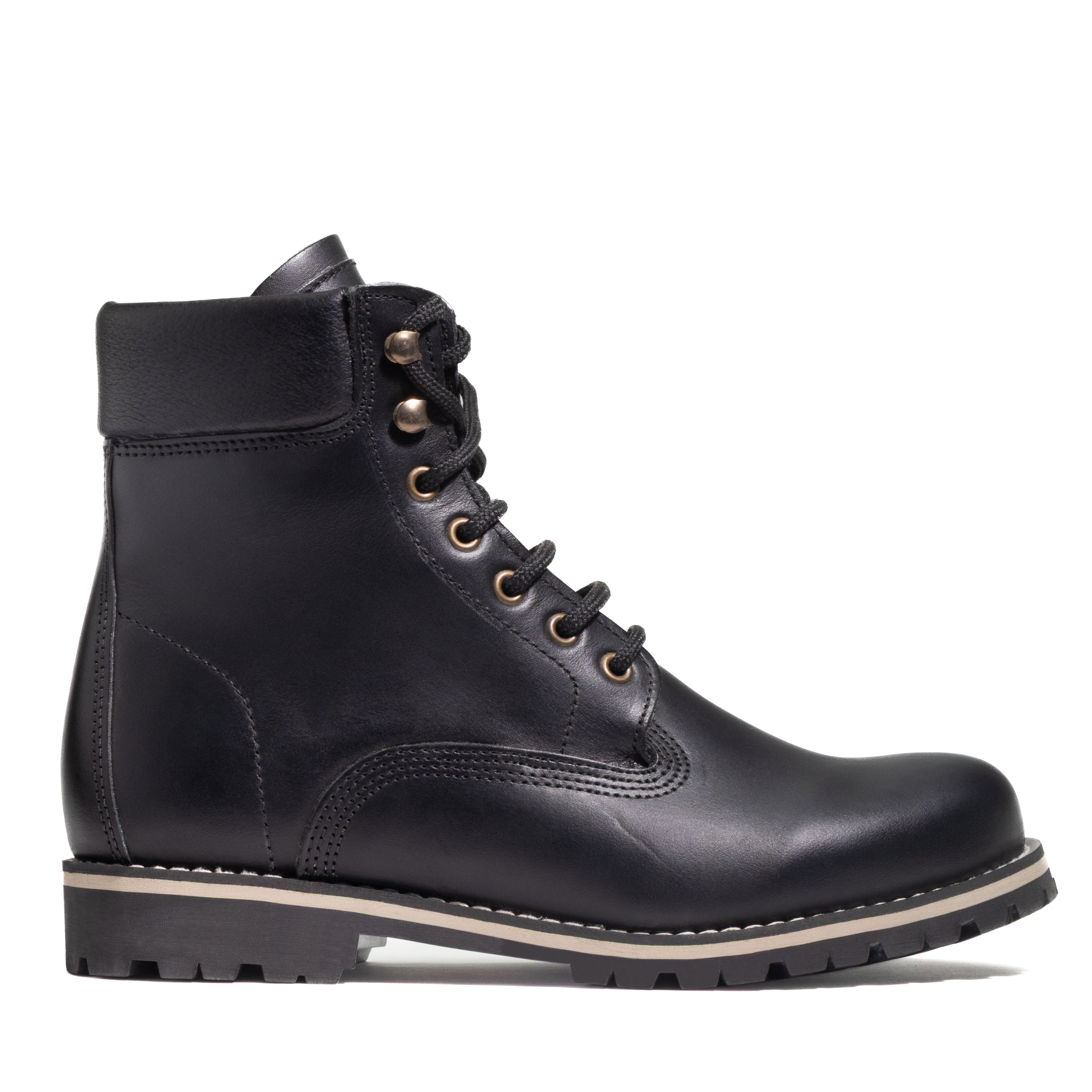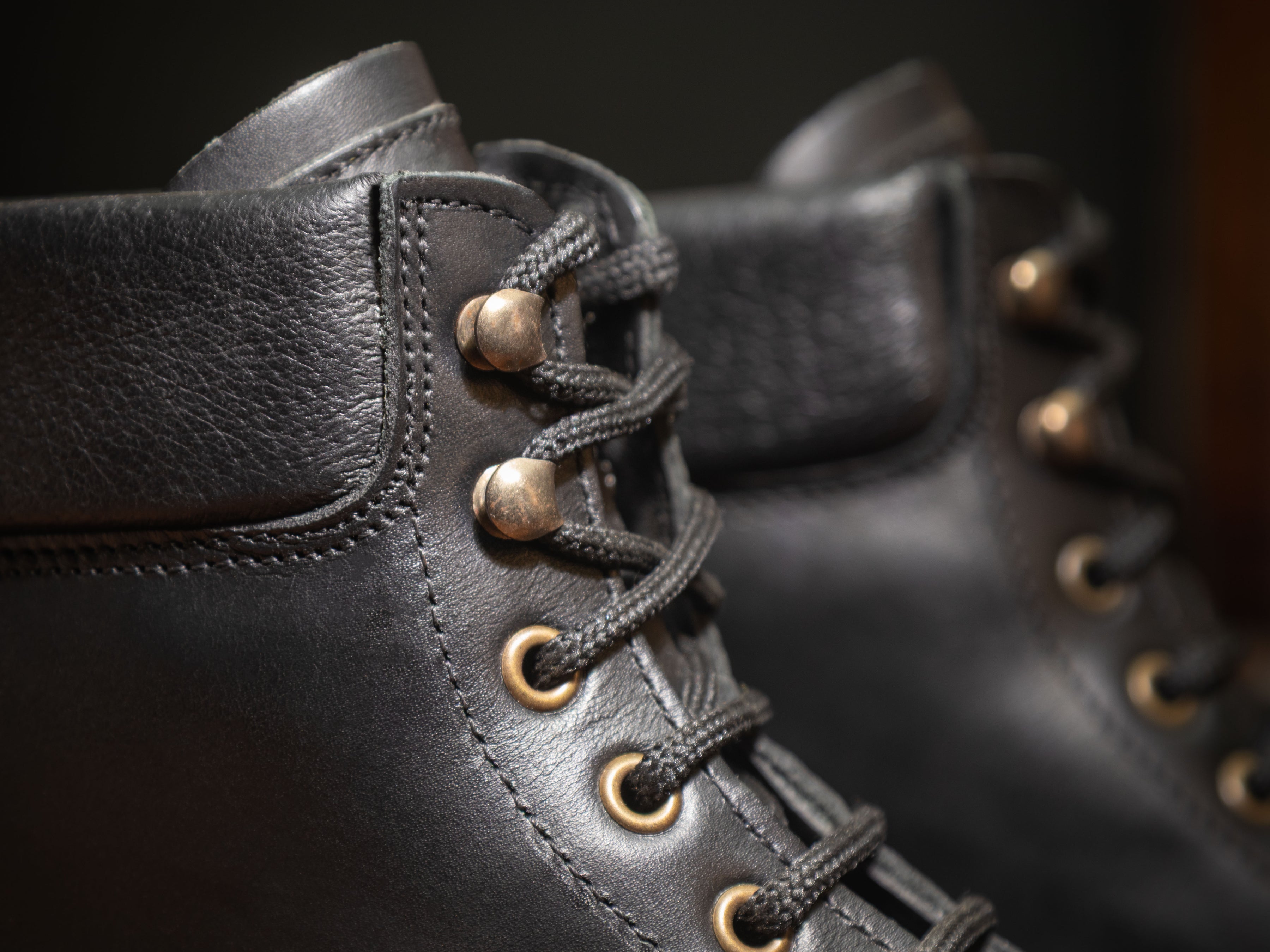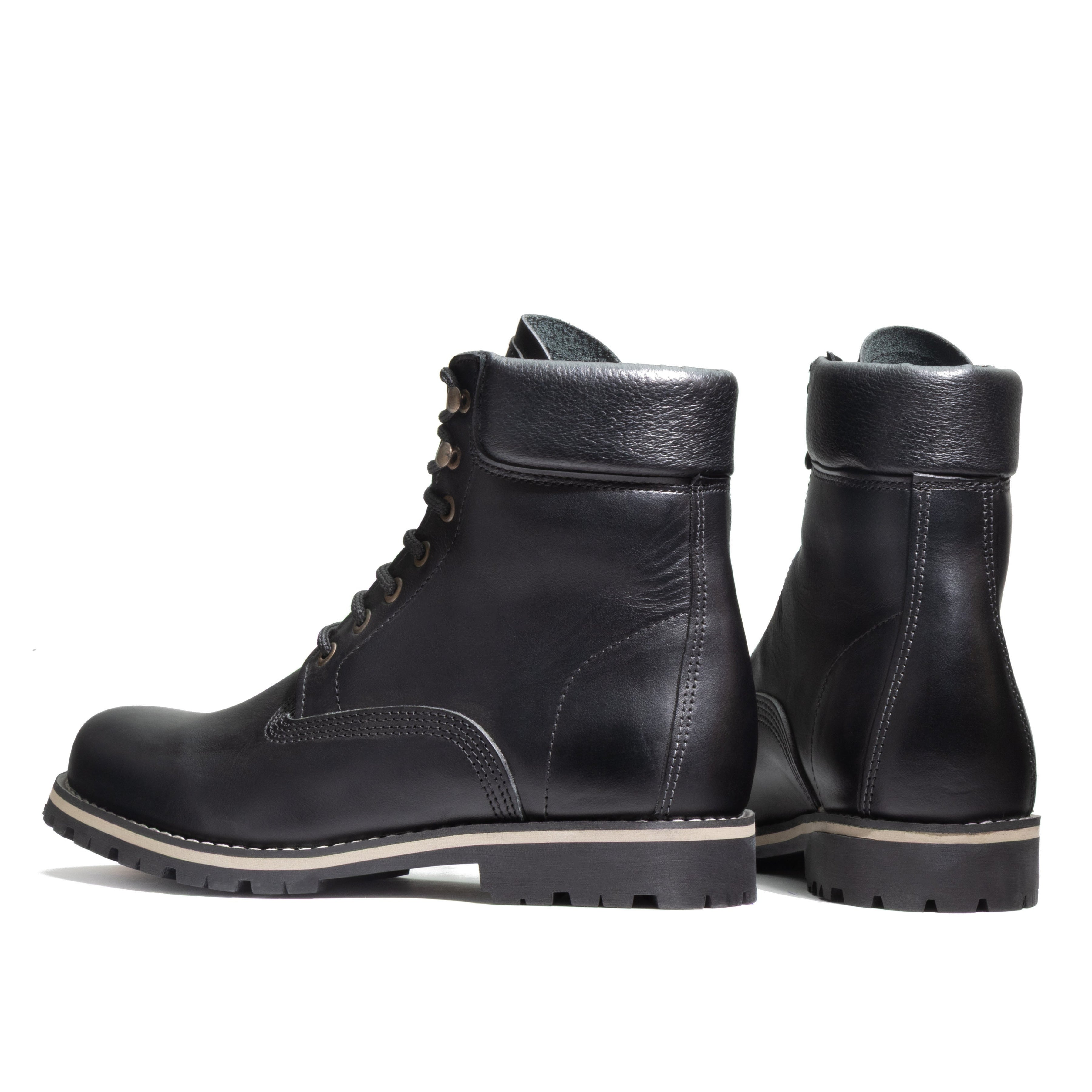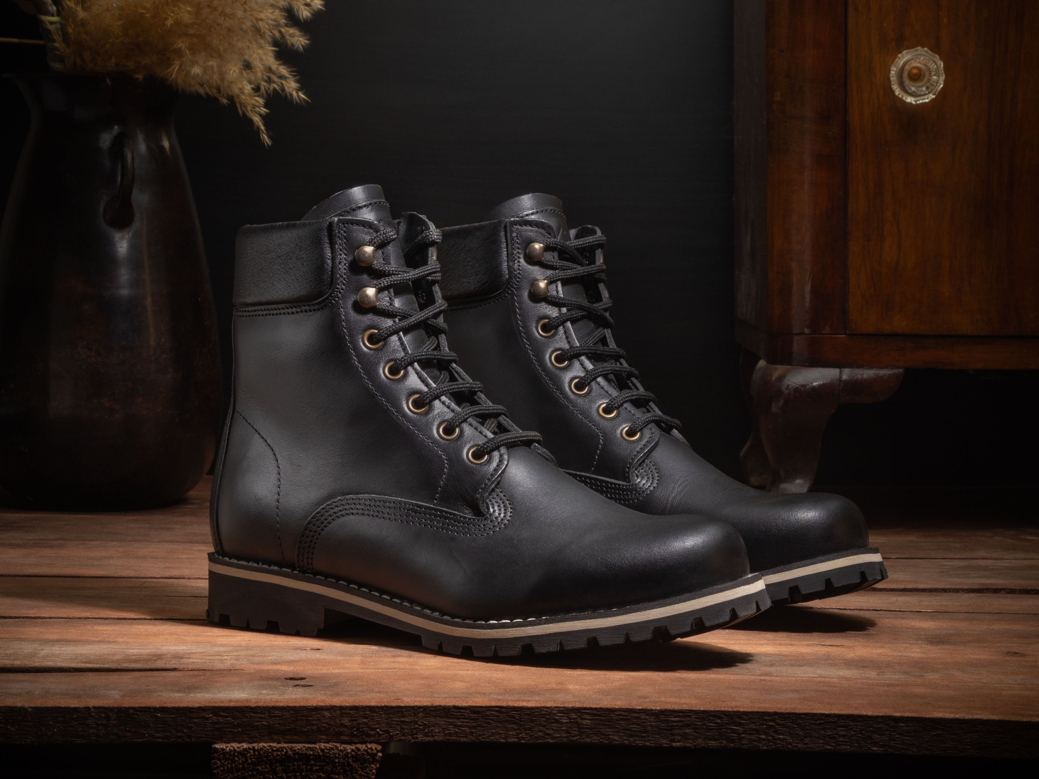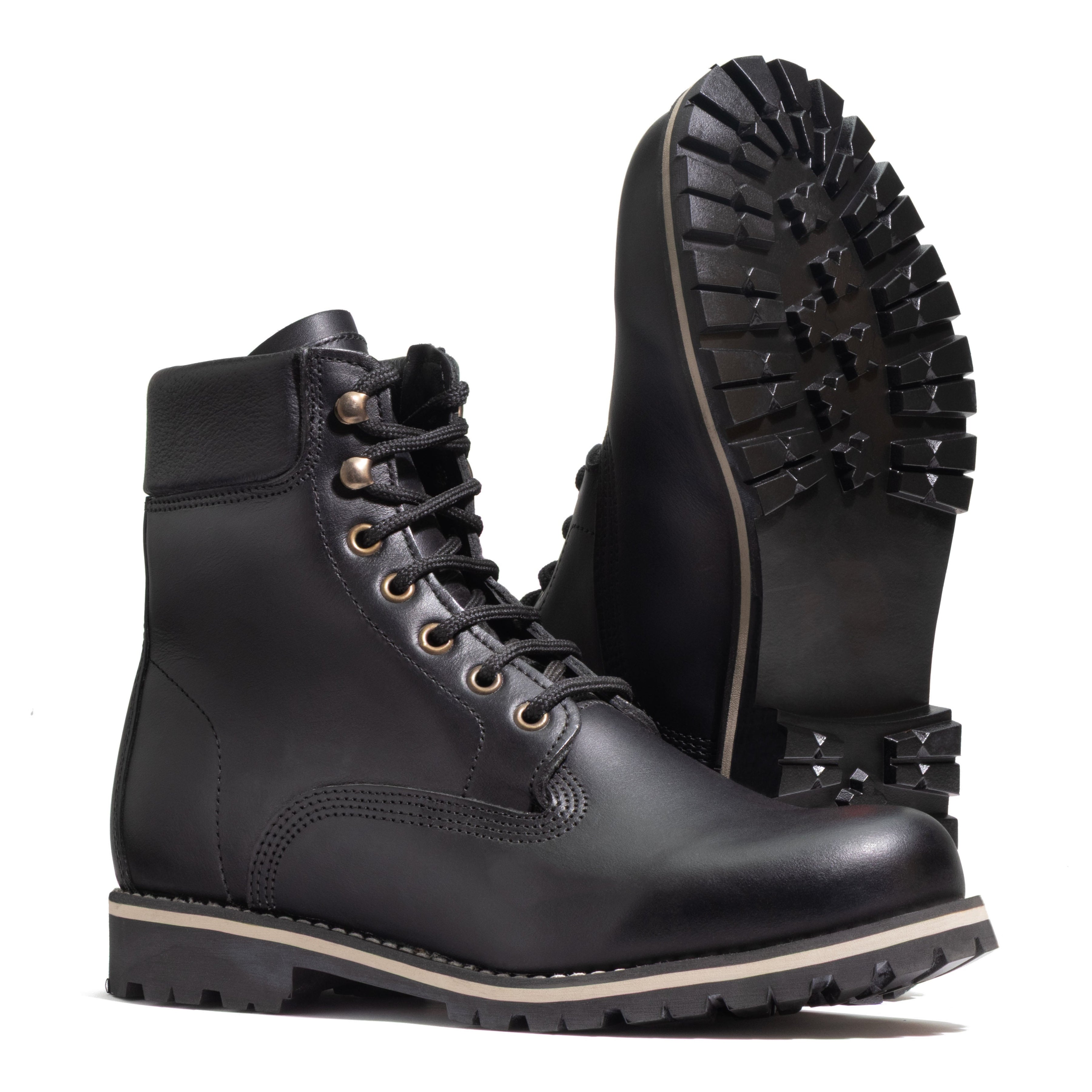 Men’s 7" (17 cm) top-grain leather lace-up boots with quad-stitched uppers and a cushioned cuff—details that boost durability, comfort, and style. Shown here in Satin Black (choose your favorite color). Tested in the rugged mountains of Laconia, Greece, for comfort, durability, and real grip across seasons.