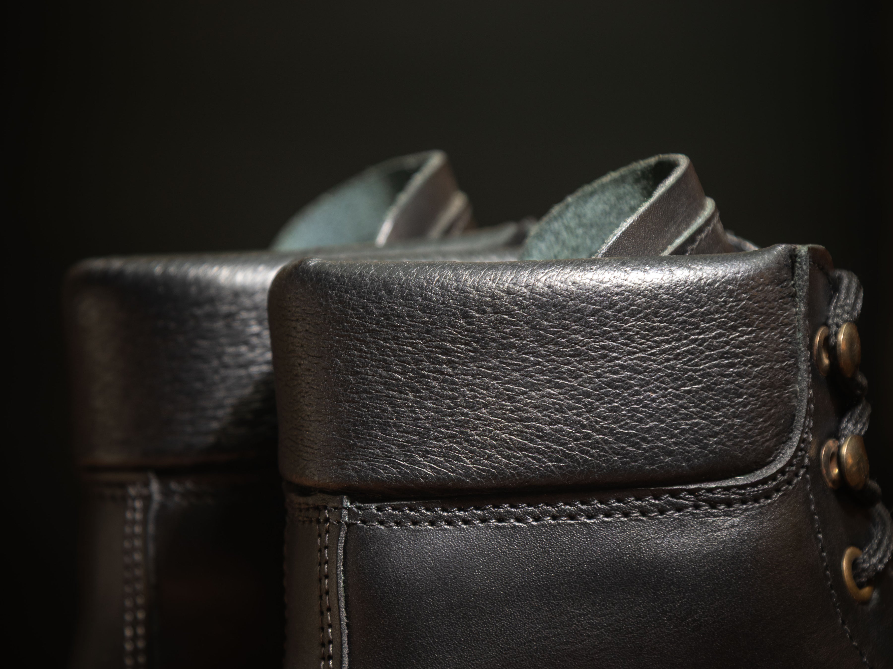 - Two premium sole options — (1) Vibram® full rubber lug, (2) Vibram® dual pad with wooden heel + leather midsole