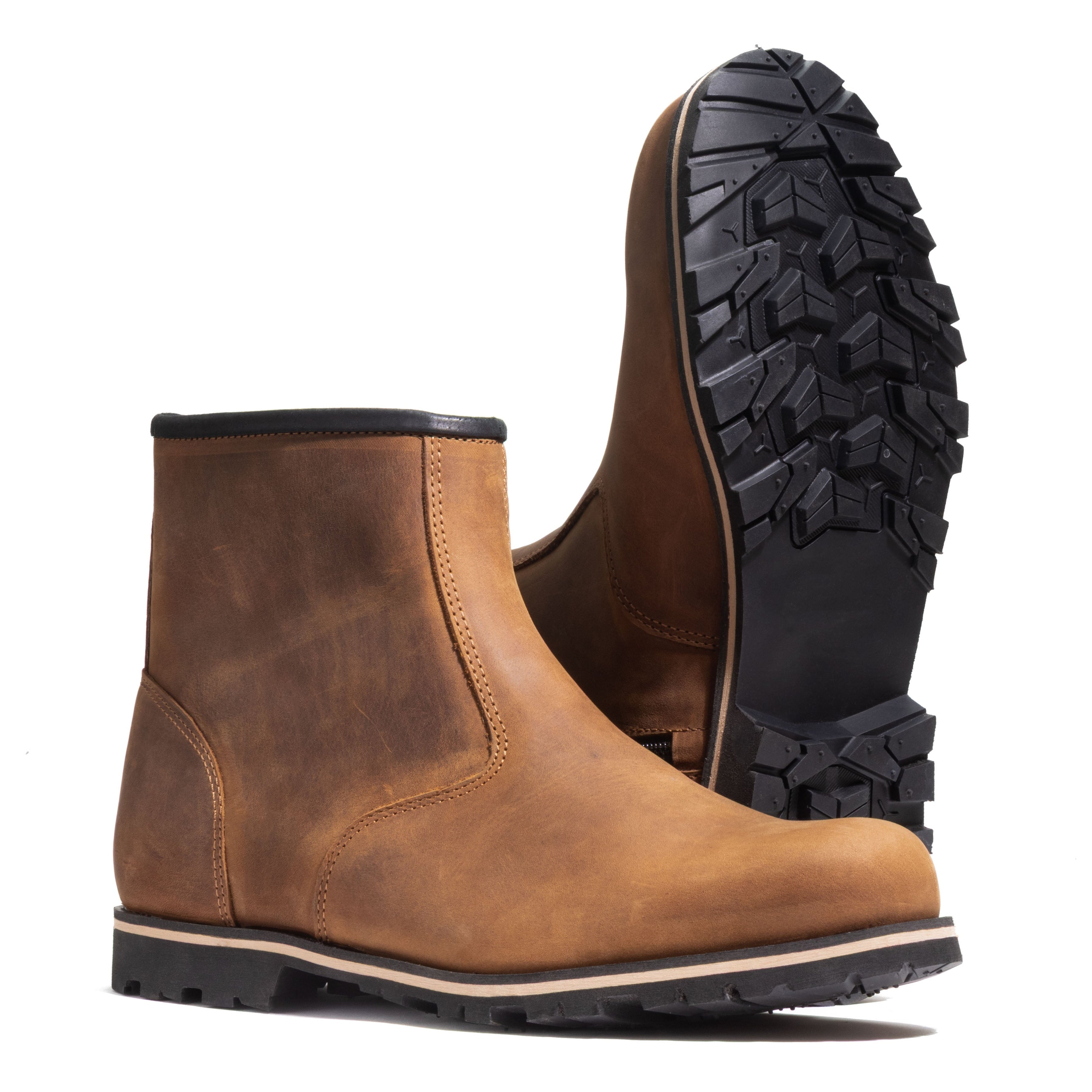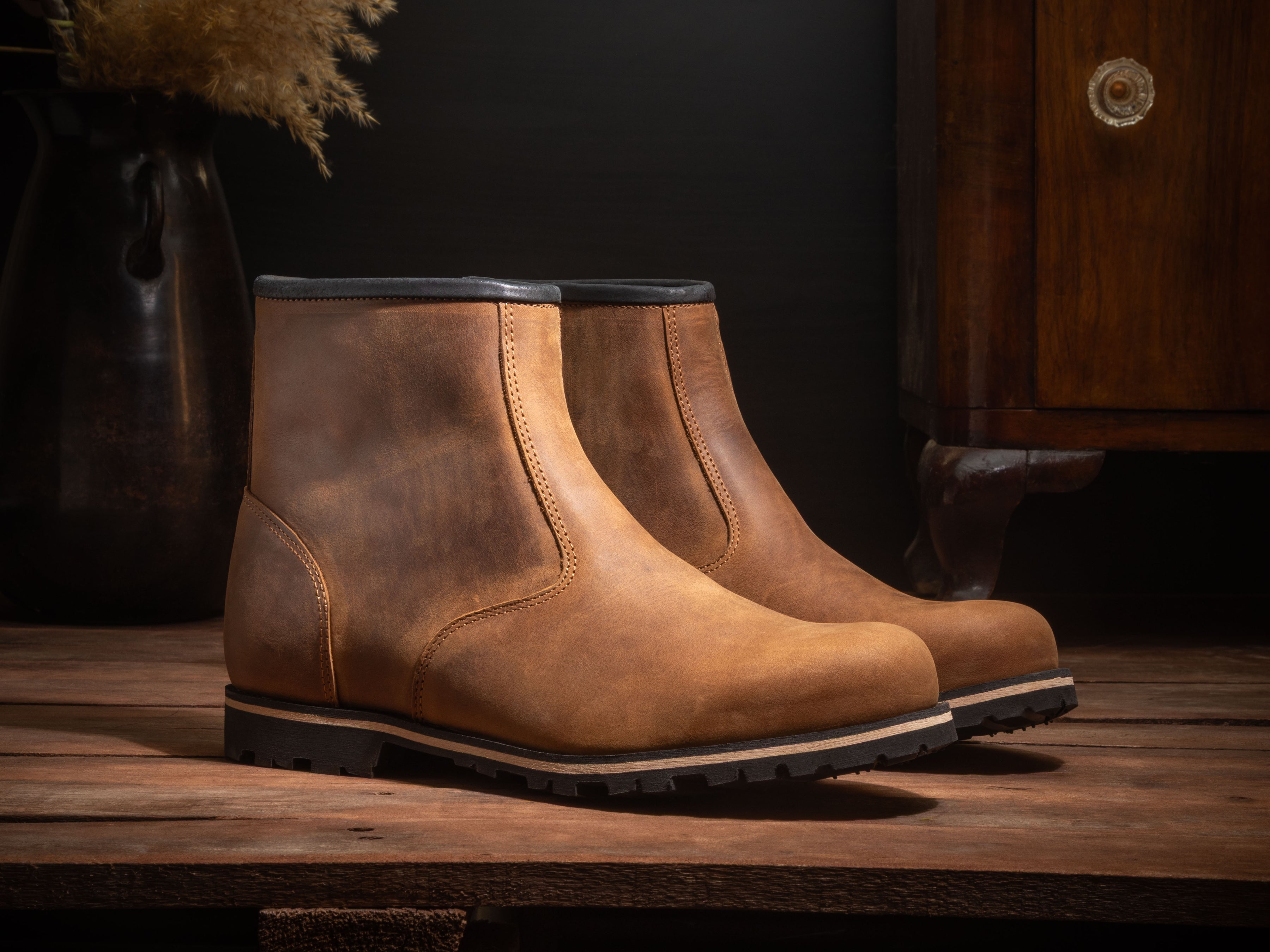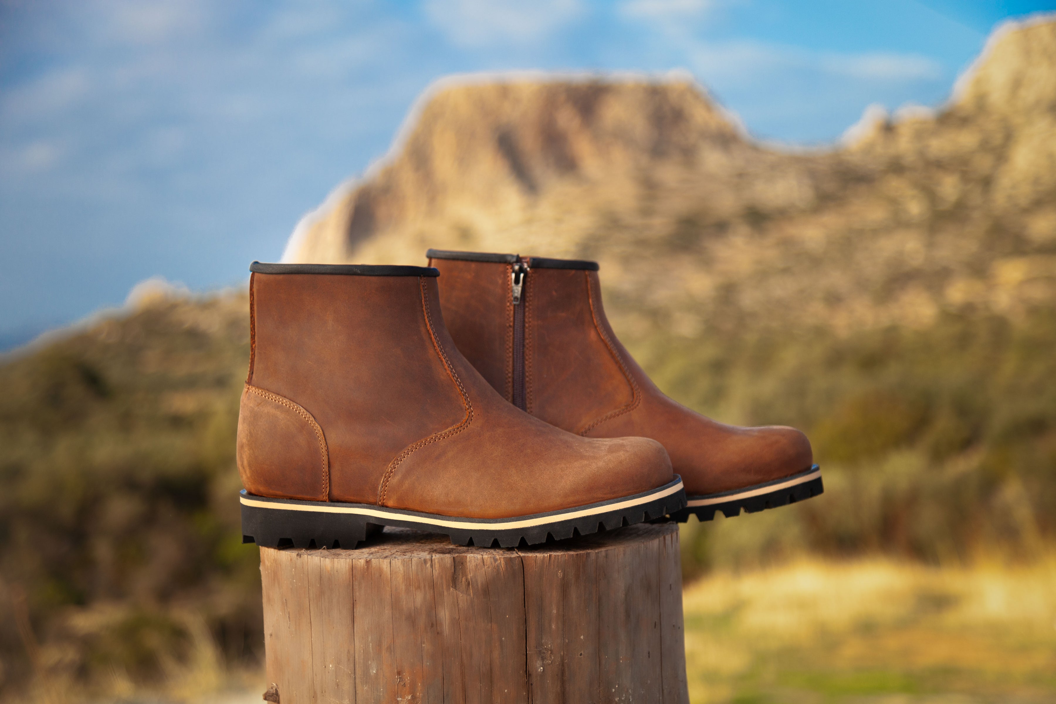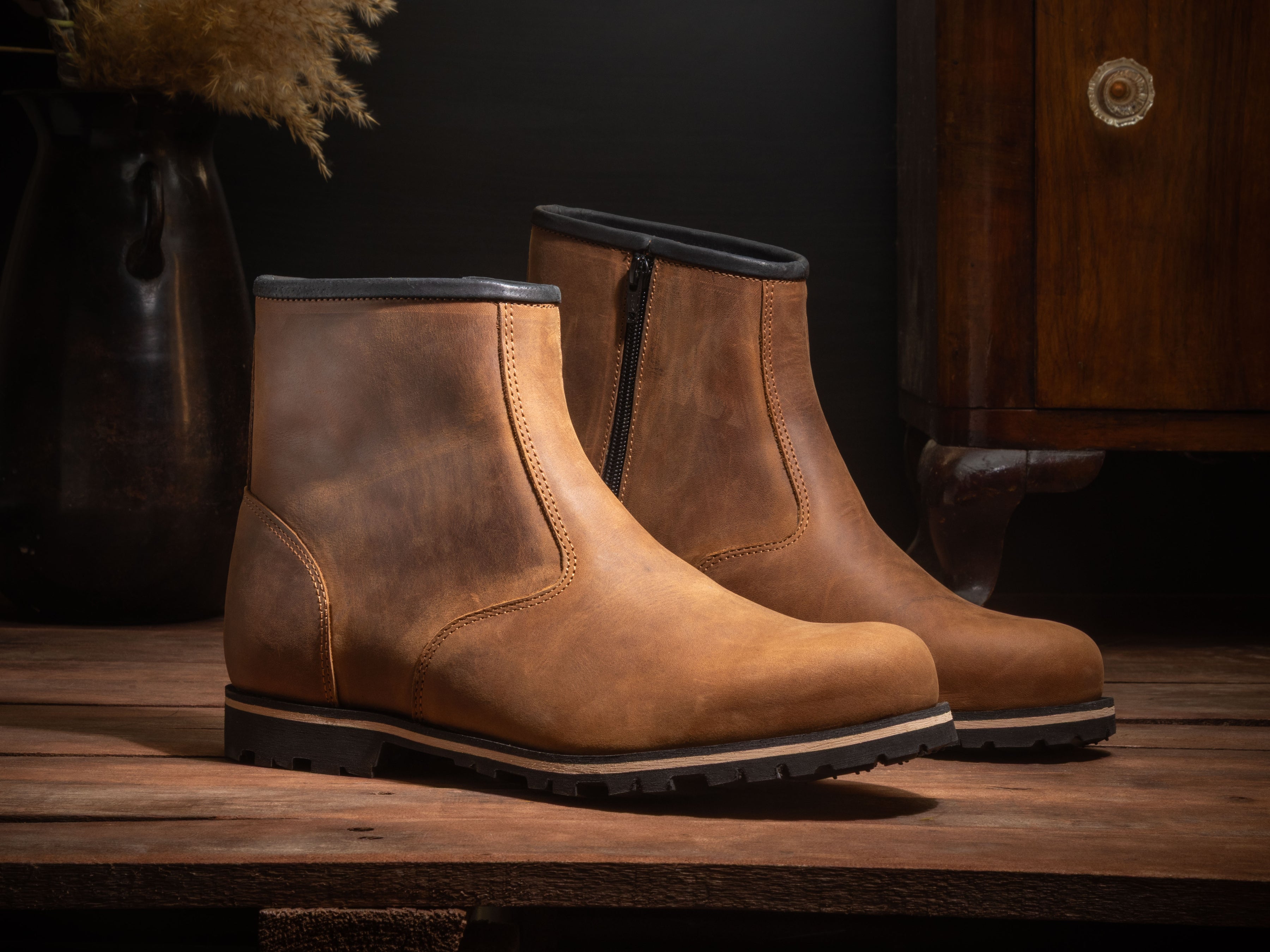 Men’s 5" (13 cm) top-grain leather side-zip boots with a clean, modern silhouette. Shown here in Matte Rustic Brown. Handmade in Laconia, Greece, for comfort, durability, and real grip from city streets to weekend wander.