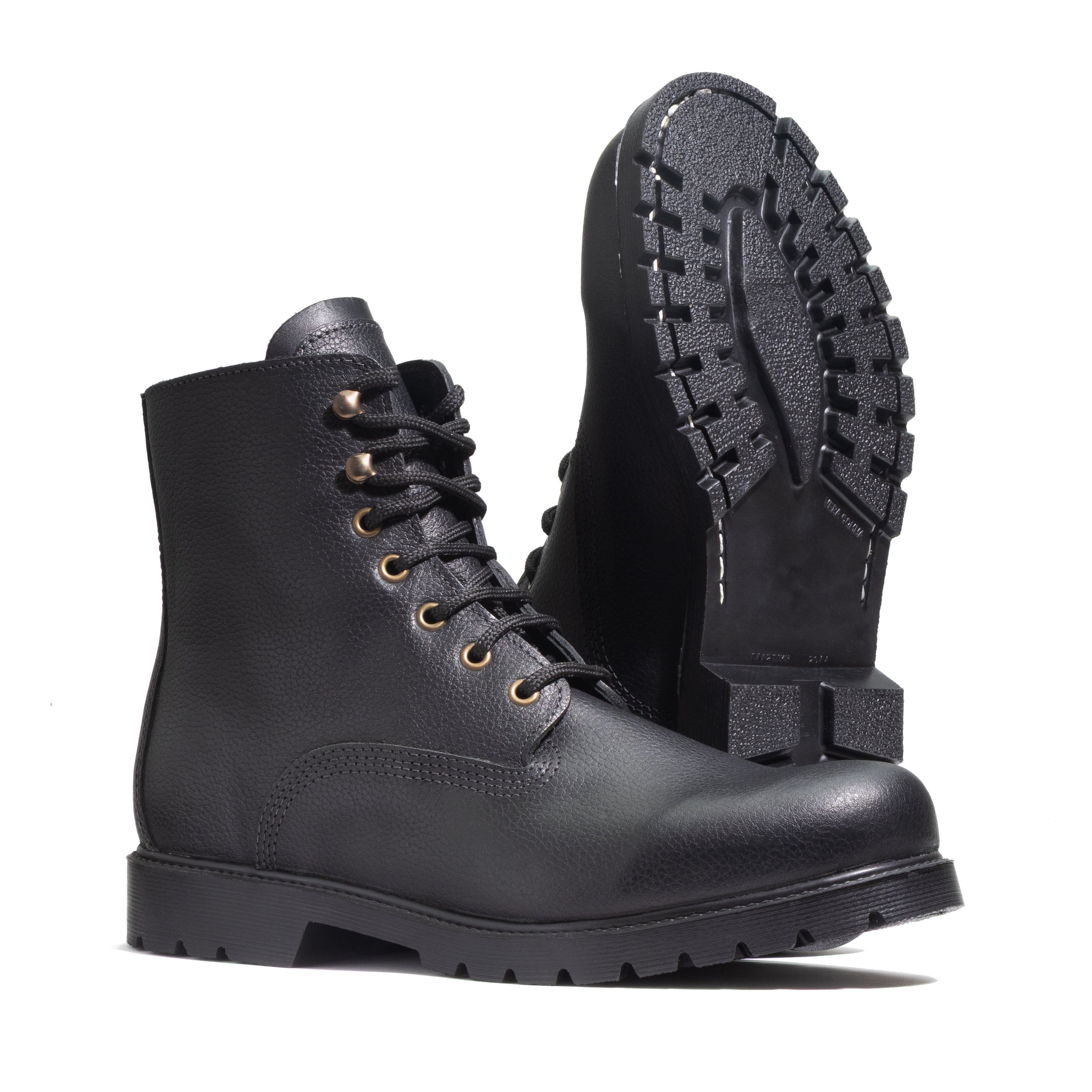 Handmade in Greece. Shown in pebbled black; 6 color options. Built for winter and rough ground with city-to-trail comfort, durability, and real grip. Tested in the mountains of Laconia. Includes a free tin of Tsavalas leather balm. Free personalization.
