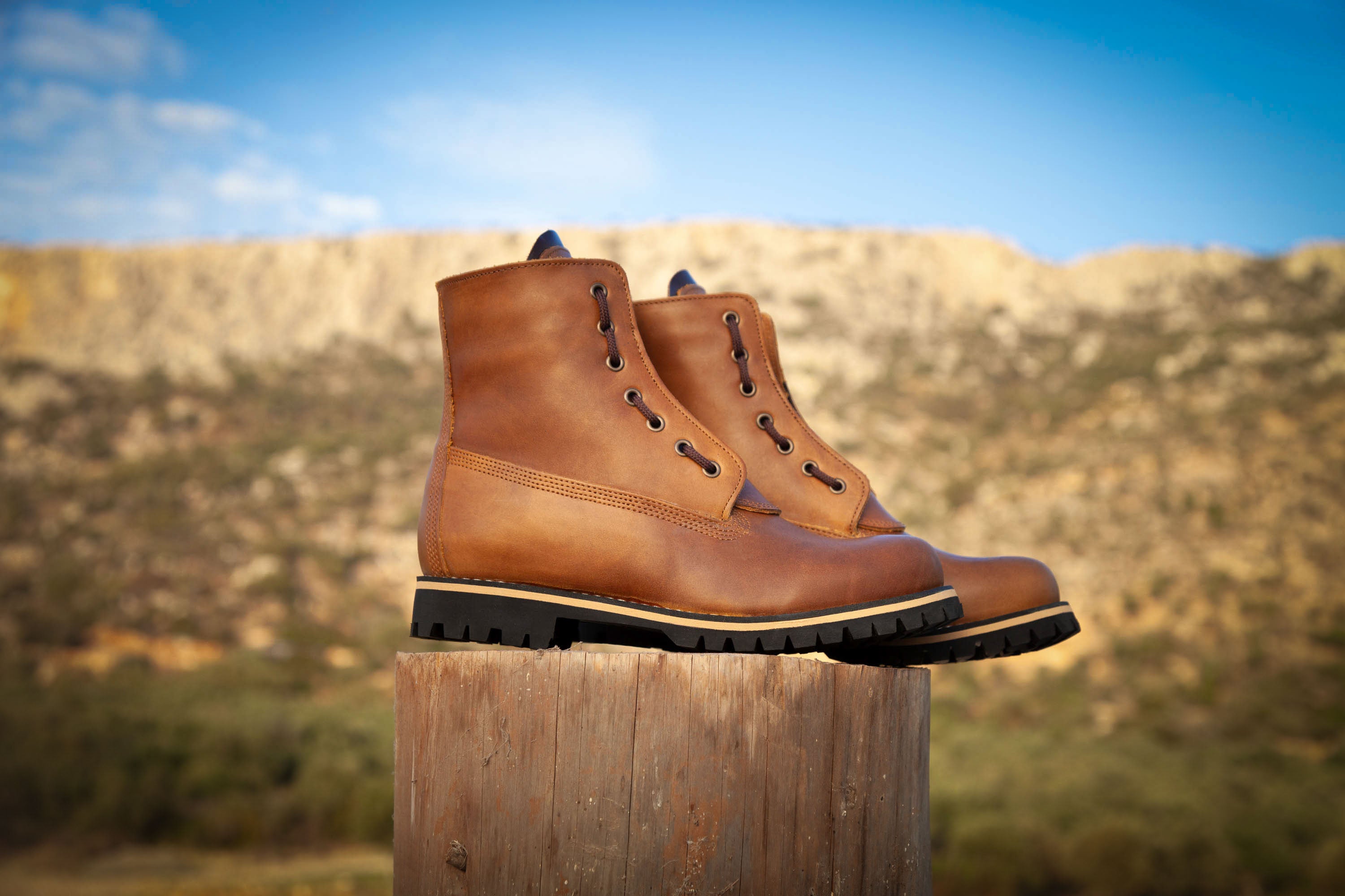 - Two premium sole options — (1) Vibram® full rubber lug, (2) Vibram® dual pad with wooden heel + leather midsole